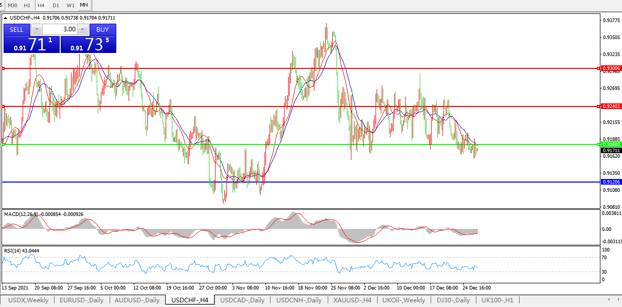 年底行情交投清淡,美元兑瑞郎弱势整理