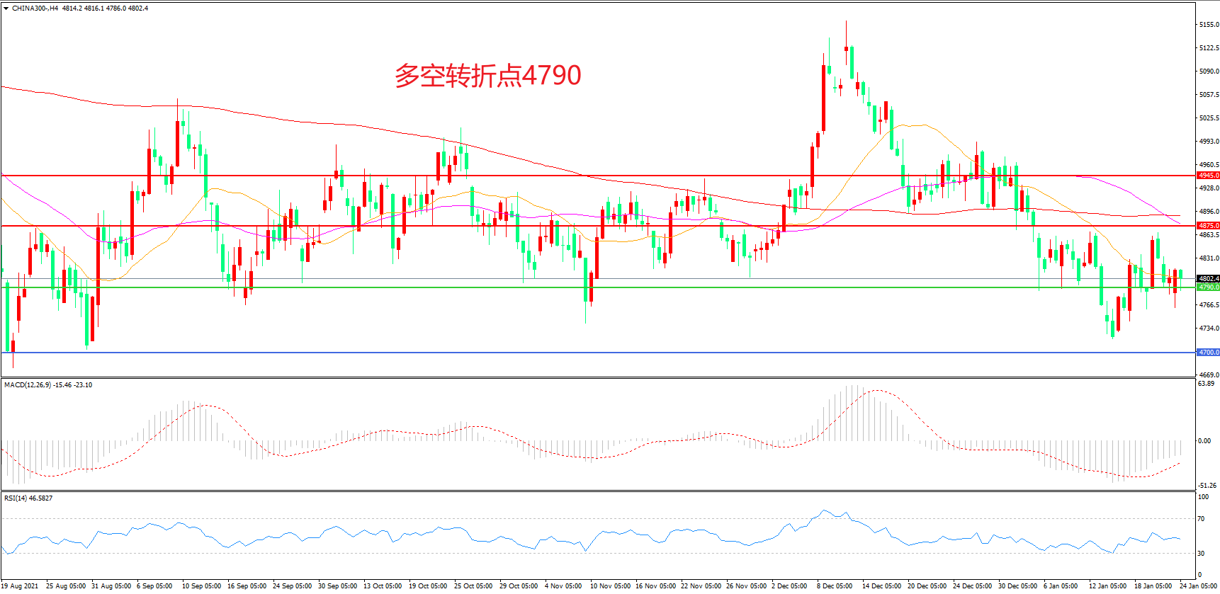 4小时图看,沪深300延续宽幅震荡形态,4875成为上方阻力,4790成为下方支撑, MACD绿柱缩短,RSI指标走平,日内延续震荡概率较大。