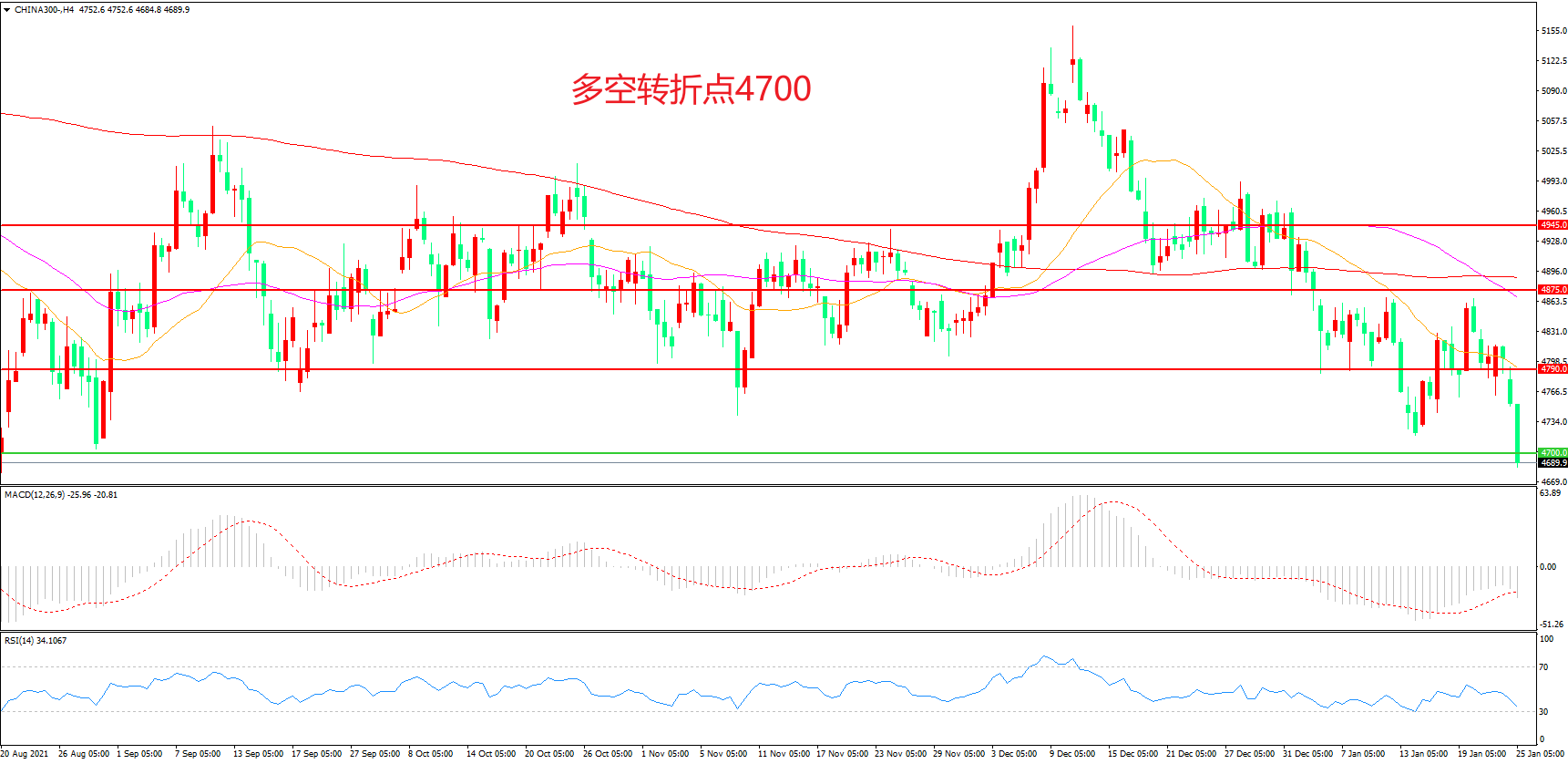 周二(1月25日),三大指数低开低走,并于午后出现加速调整迹象,上证指数创下最近18个月最大单日跌幅,沪深300破位下行,收报4689.9点。两市合计成交9368亿元,北向资金净卖出35亿。春节假期来临前,沪深300跌跌不休,走势上连续创出新低,短期看股指处于寻底走势中,等待缩量止跌迹象。
