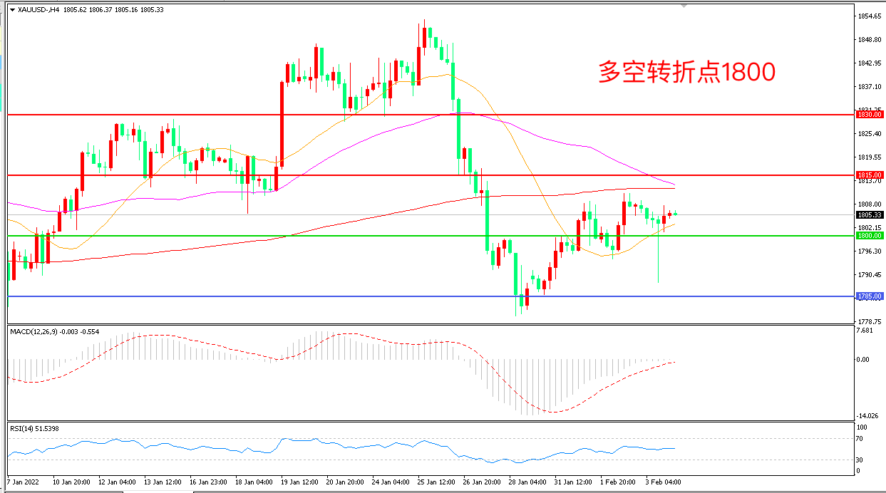 交易策略:在1800.00之上看涨,目标1815.00       1830.00