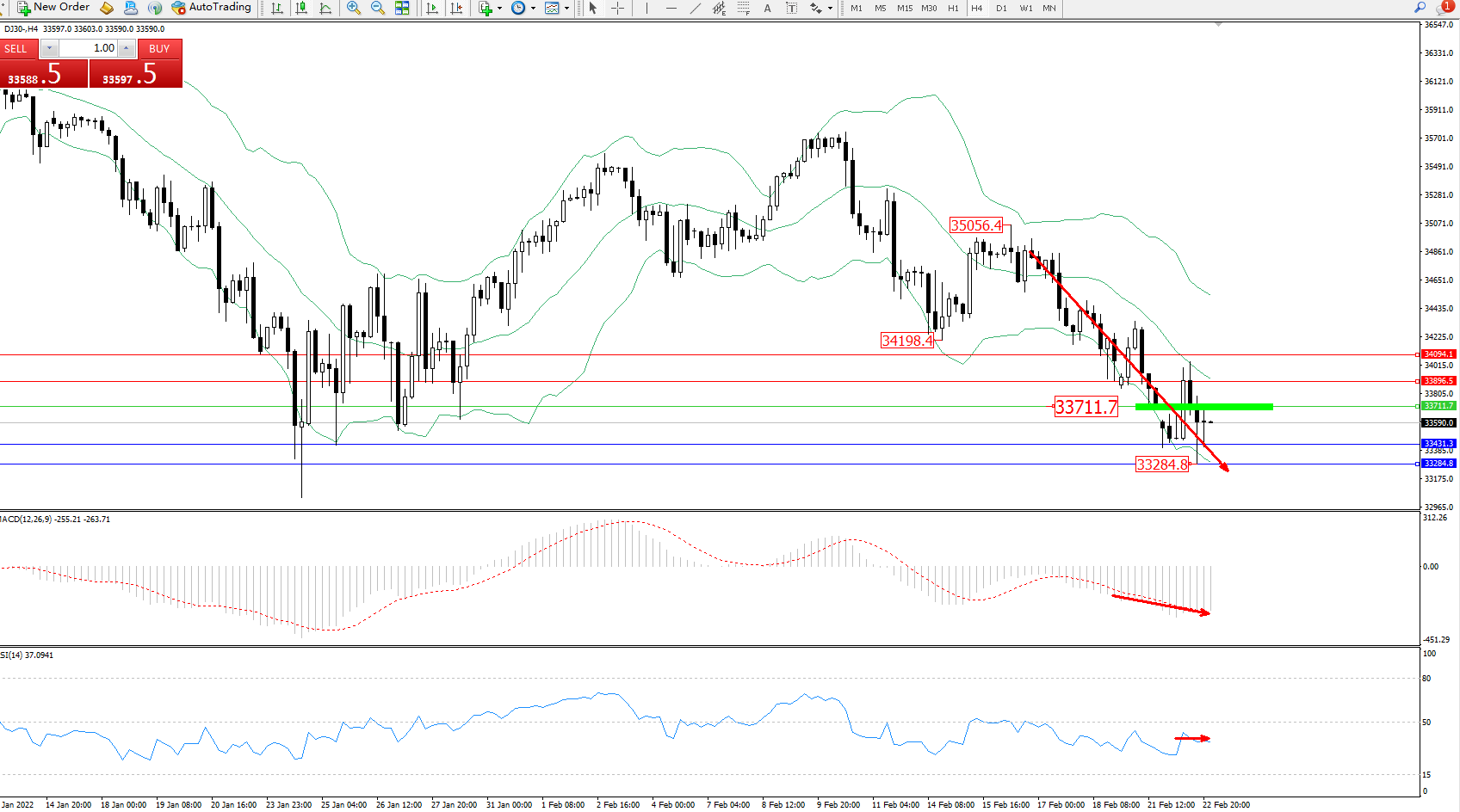 交易策略:33711下方看跌,目标33431、33284