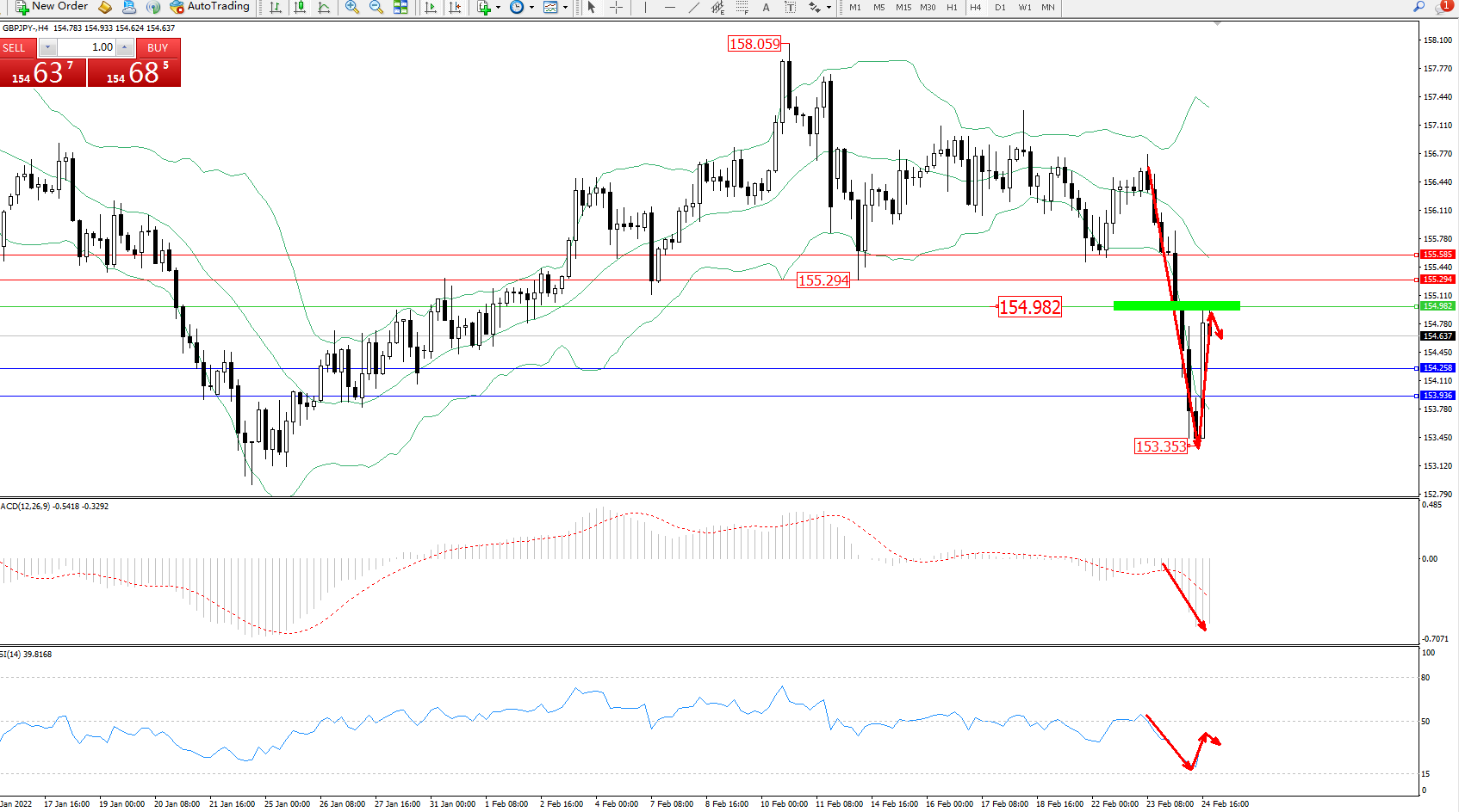 技术点评:空头动力延续布林带指标下轨附近不断下挫,低位抵达153.353附近节点后快速回升,呈V型反转走势不断上移,布林带指标呈张口走势后开始短暂收口,空头下行趋势或将延续,MACD指标处于空头区域急速下挫后开始整理,RSI指标低位空头动力震荡下行后短暂回升后开始徘徊;