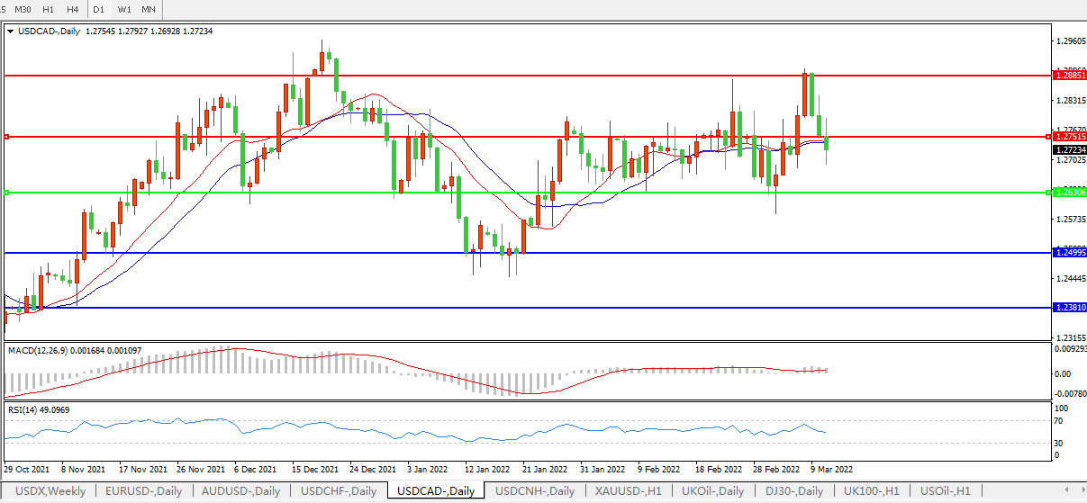 美元兑加元USDCAD 日线图: