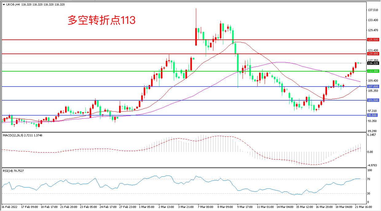 周一(3月21日),克里姆林宫表示,与乌克兰谈判尚未达成协议,而也门的胡塞武装又对沙特阿拉伯能源和海水淡化设施发动一系列导弹和无人机袭击,可能会对未来的供应产生影响,布伦特原油大幅飙升,收报116.32美元/桶。目前原油市场主要矛盾点已经从前期的需求弱势担忧,迅速转移至供给风险可能引发的供应紧缩,叠加近期中东地区乱局频发的局势,油价延续强势概率较大。