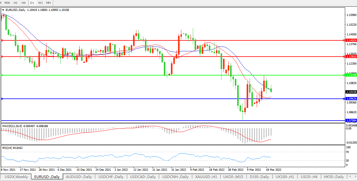 欧元兑美元下跌0.30%,至1.1015,此前有少量投机性卖盘;汇价高于1.10心理关口;欧元兑瑞郎连续第二天走低。欧洲央行行长拉加德周一表示,美联储和欧洲央行的行动也将不同步,因为乌克兰战争对各自经济的影响大相径庭。