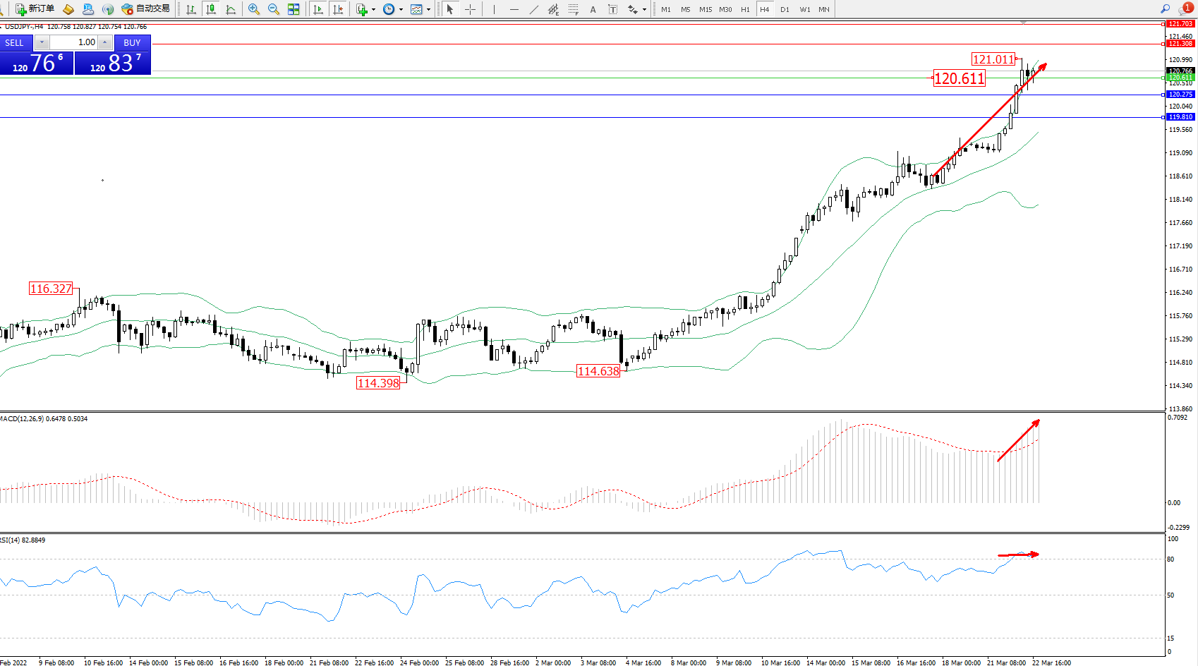 技术点评:多头动力延续布林带指标通道上轨附近持续震荡上扬,高位拉升态势良好,短期未见最终止步迹象,布林带指标呈上行趋势走势持续中,且高位开始缓慢张口,MACD指标处于多头区域维持震荡上扬,RSI指标处于多头区域位持续震荡上移至超买区80均衡线上側徘徊中;