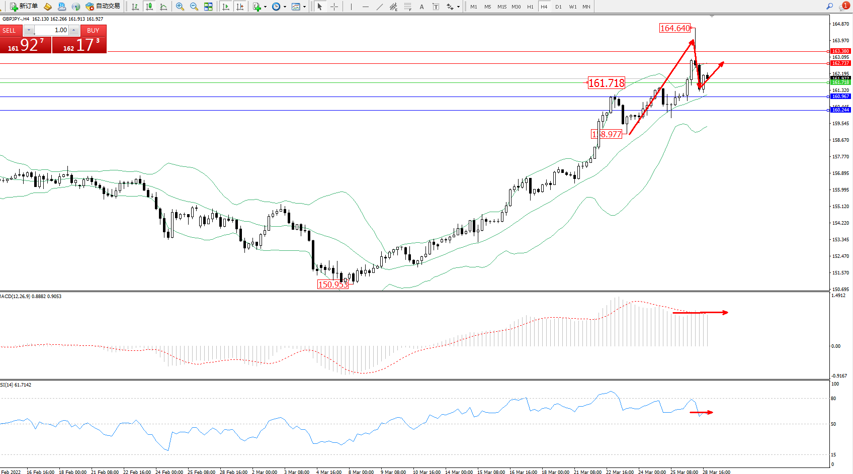 交易策略:161.718上方看涨,目标162.737、163.380