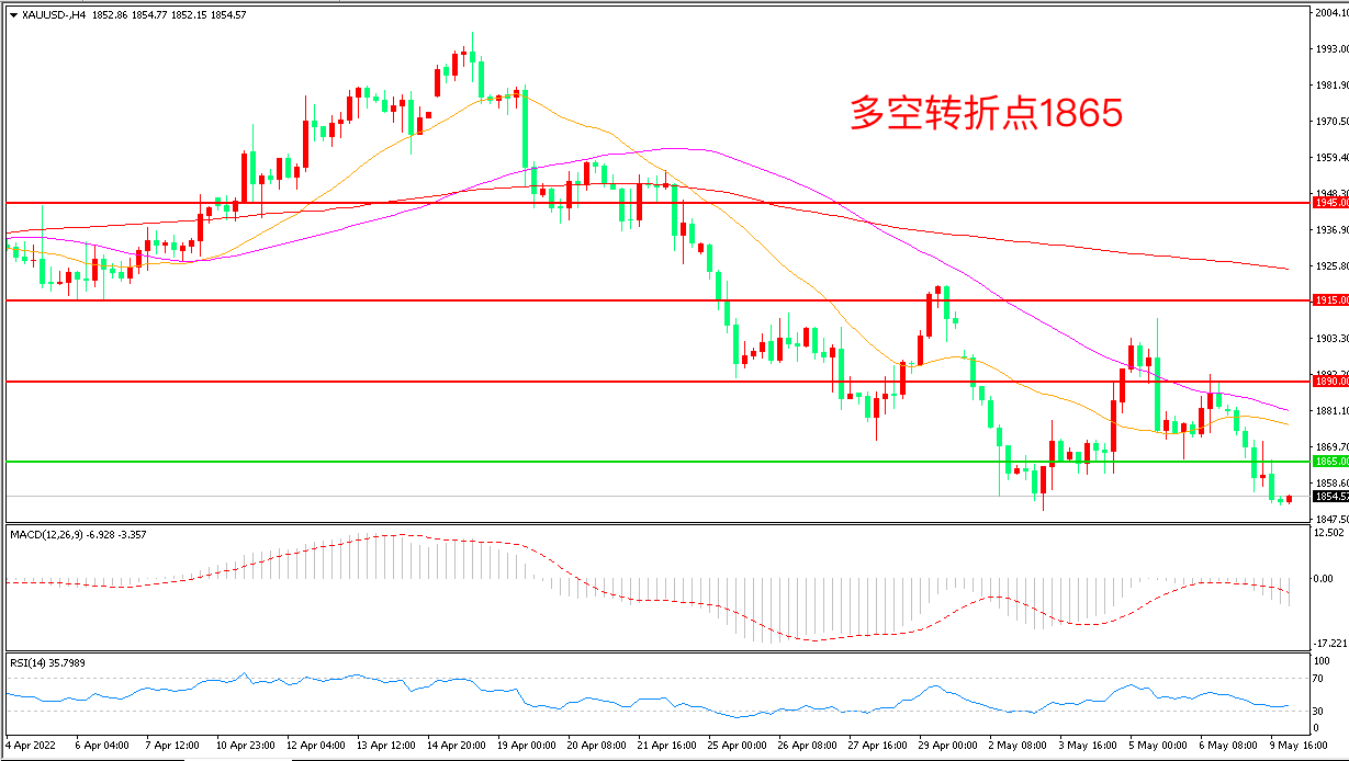 交易策略:在1865.00之下看跌,目标1840.00      1820.00