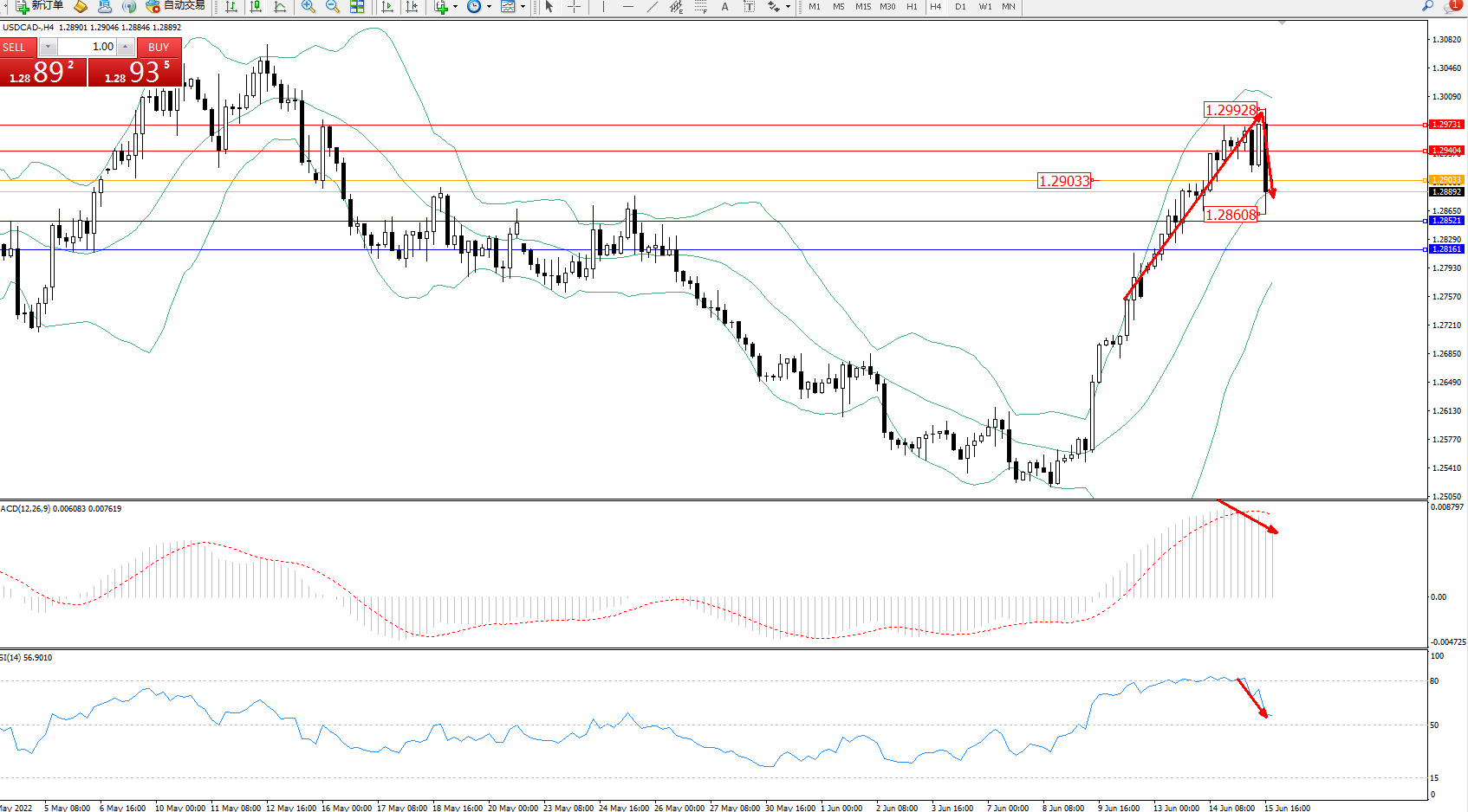 技术点评:多头动力延续布林带指标通道中上轨区间持续震荡上扬,高位抵达1.29928附近节点遇阻回撤,触及布林带指标中轨附近节点后震荡,布林带指标呈上行趋势走势后开始收口,MACD指标处于多头区域高位维持回撤下行,RSI指标处于高位维持平移后开始震荡下挫‘’
