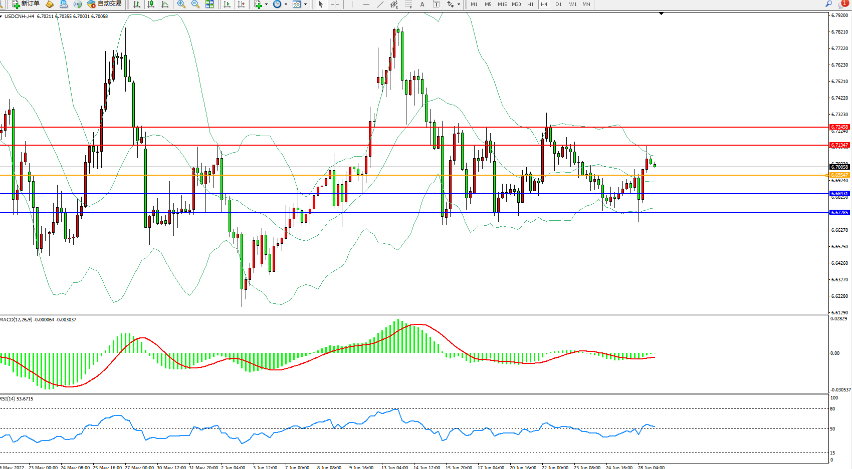 交易策略:6.69547上方看涨,目标6.71347、6.72458
