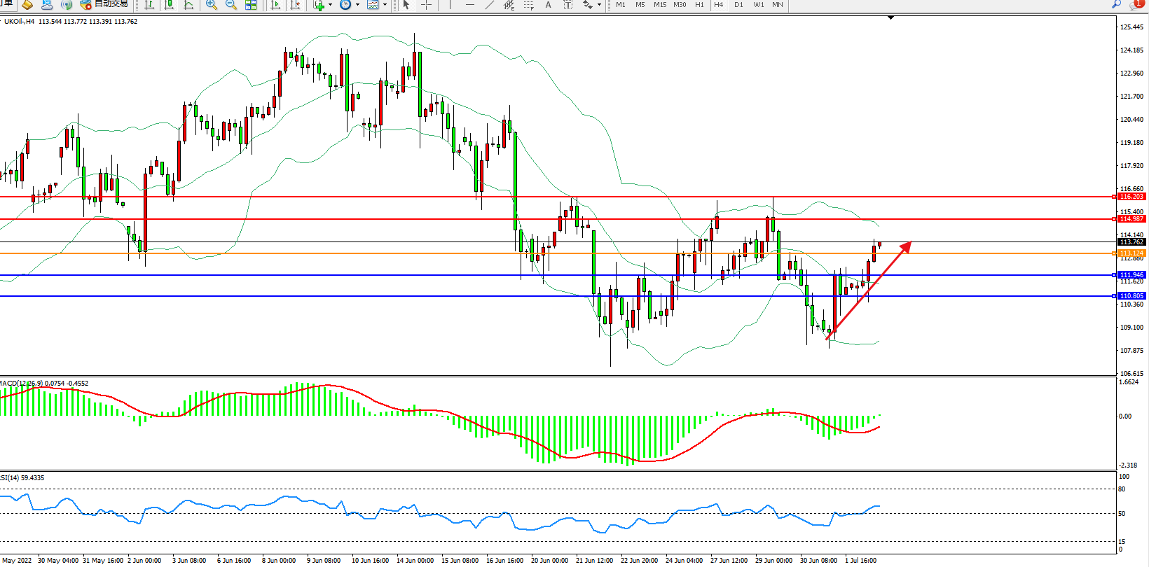 布油维持113.124附近震荡,由于利比亚和尼日利亚的停产,欧佩克6月的原油产量较5月有所下降,受OPEC+协议约束的10个卡特尔生产国上个月仅将其总产量提高了2万桶/日。