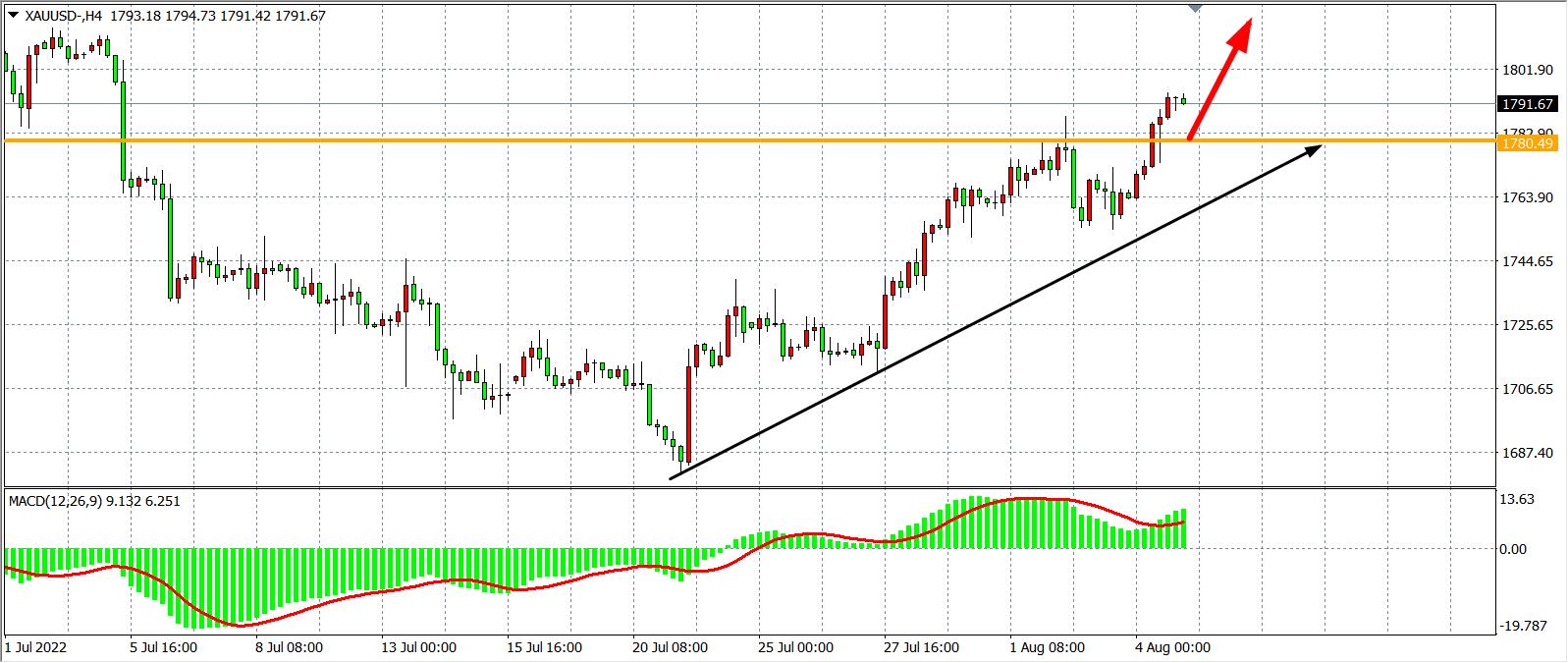 交易策略:在1780.00之上看涨,目标1800.00 1820.00