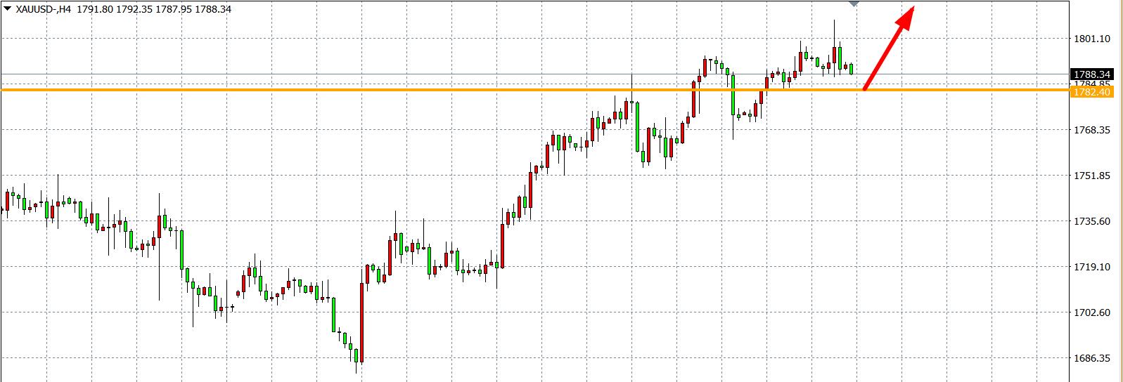 交易策略:在1782.00之上看涨,目标1800.00 1820.00