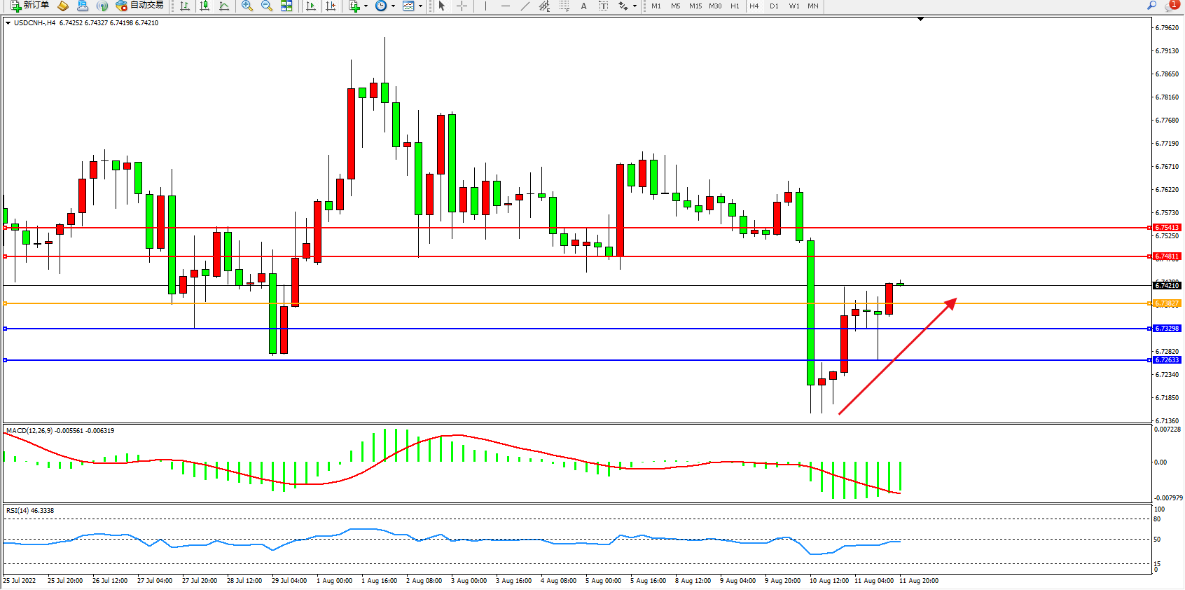 人民币:低位多头震荡拉升 USDCNH  HKDCNH