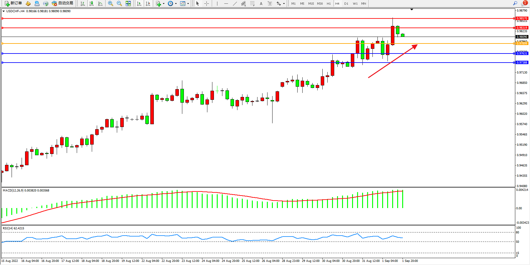 交易策略:0.97899上方看涨,目标0.98319、0.98570