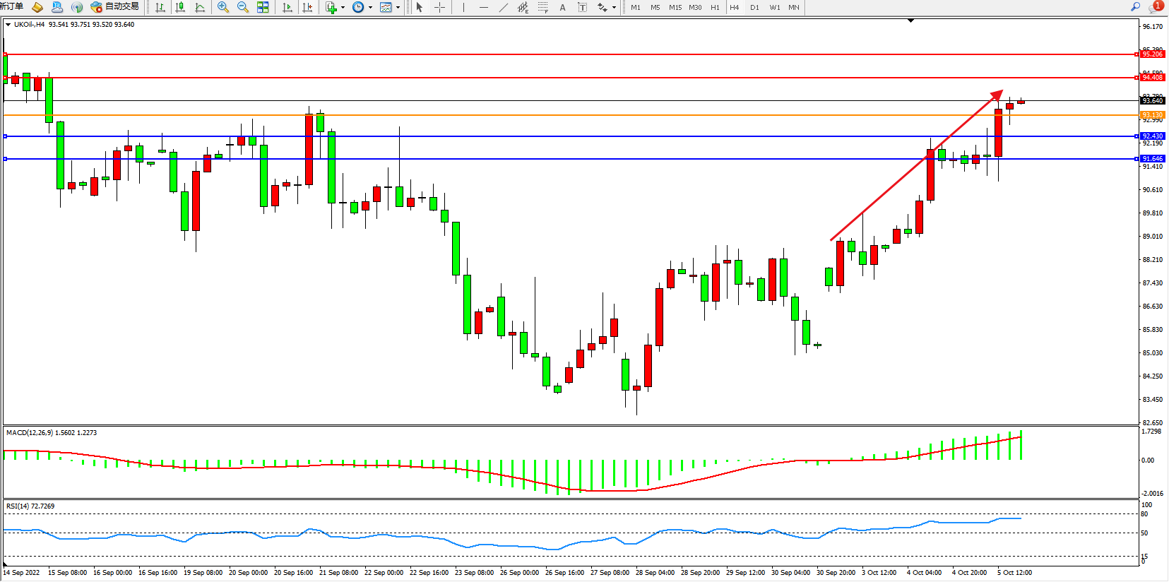 布油UKOil——4小时K线图显示: