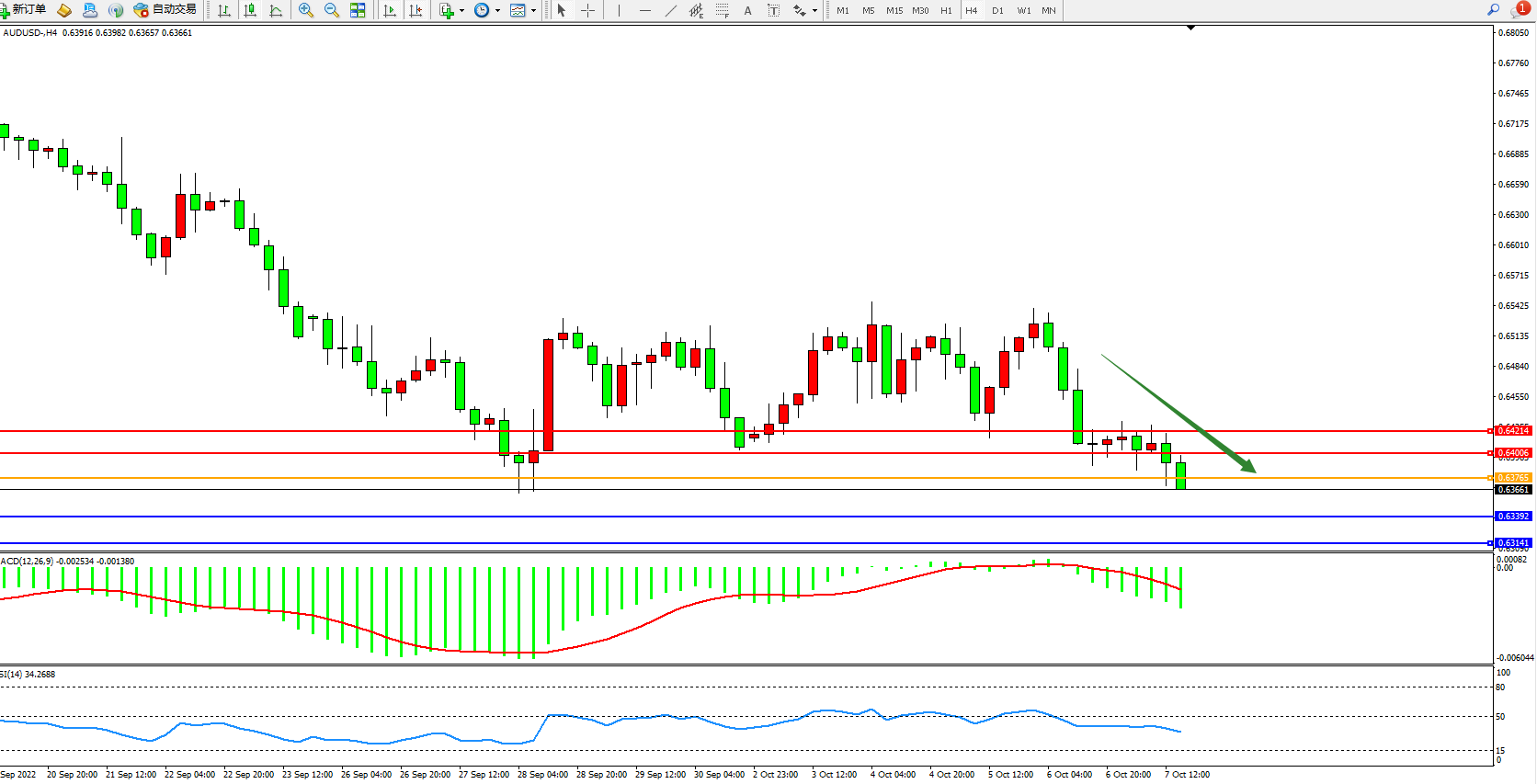 交易策略:0.63765下方看跌,目标0.63392、0.63141