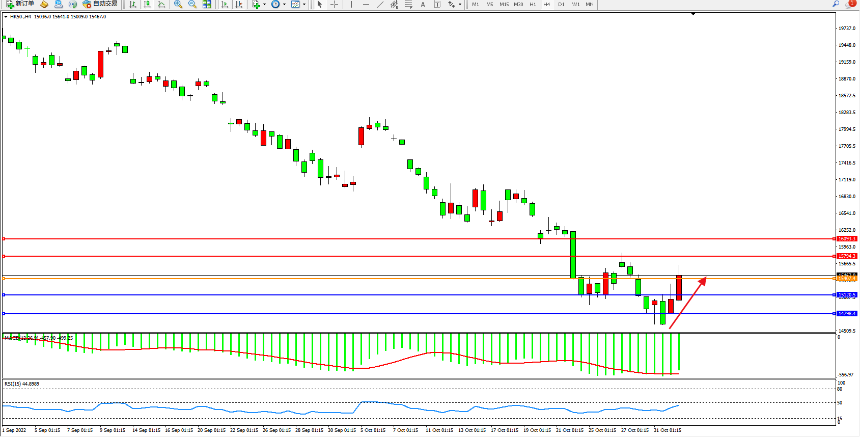 香港恒生指数11月1日(周二)收盘上涨768.25点,涨幅5.23%,报15455.27点;港股午后涨幅加大,市场情绪一片大好,11月迎来开门红。恒生科技指数午后一度大涨超9%,收涨7.8%收复3000点整数关口,恒指、国指分别大涨5.23%和5.49%,恒指更是上扬768点。大型科技股首当其冲,快手涨15%,美团、腾讯涨超10%,南下资金今日大幅净流入90.67亿港元,大市成交额为1538亿港元。