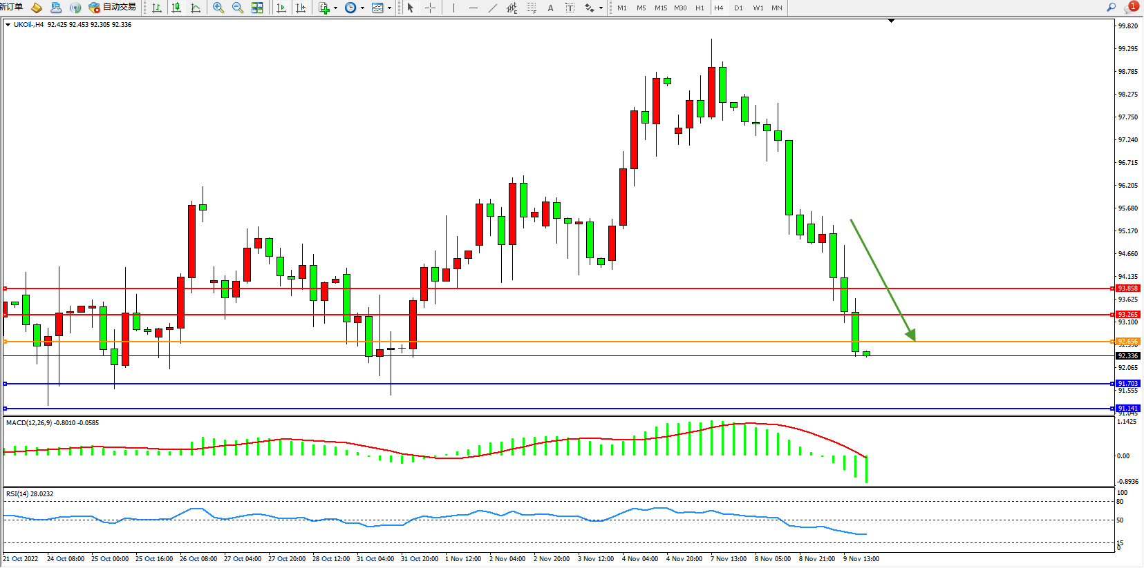 布油UKOil——4小时K线图显示: