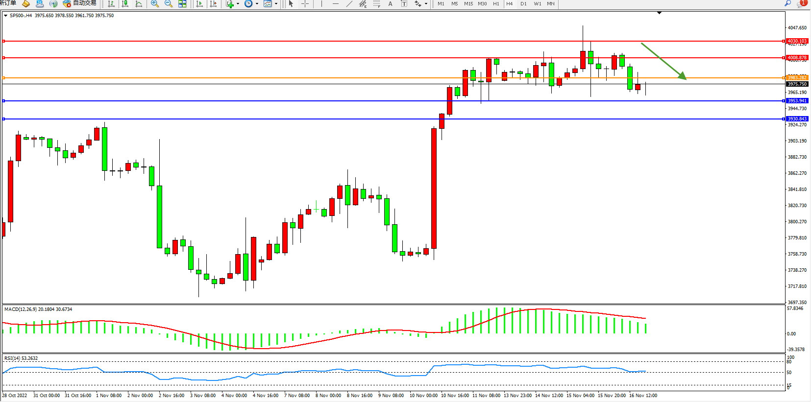 标普SP500——4小时K线图显示: