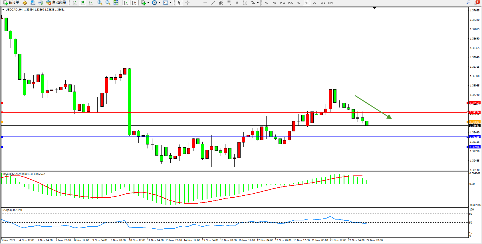 交易策略:1.33800下方看跌,目标1.33289、1.32936