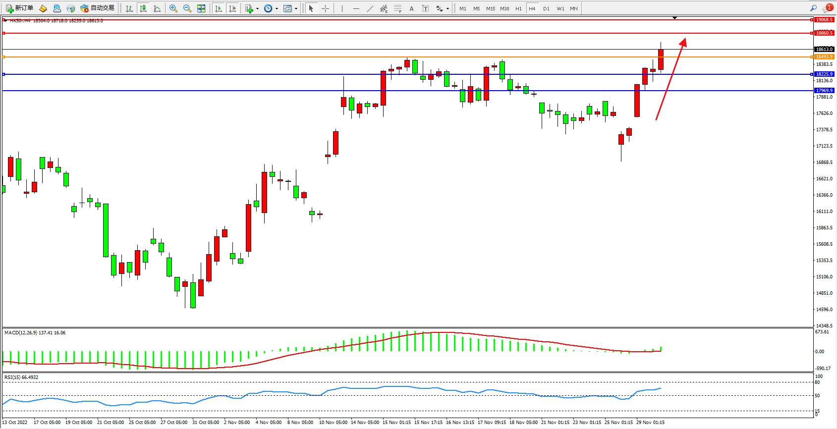 恒指HK50 4小时图