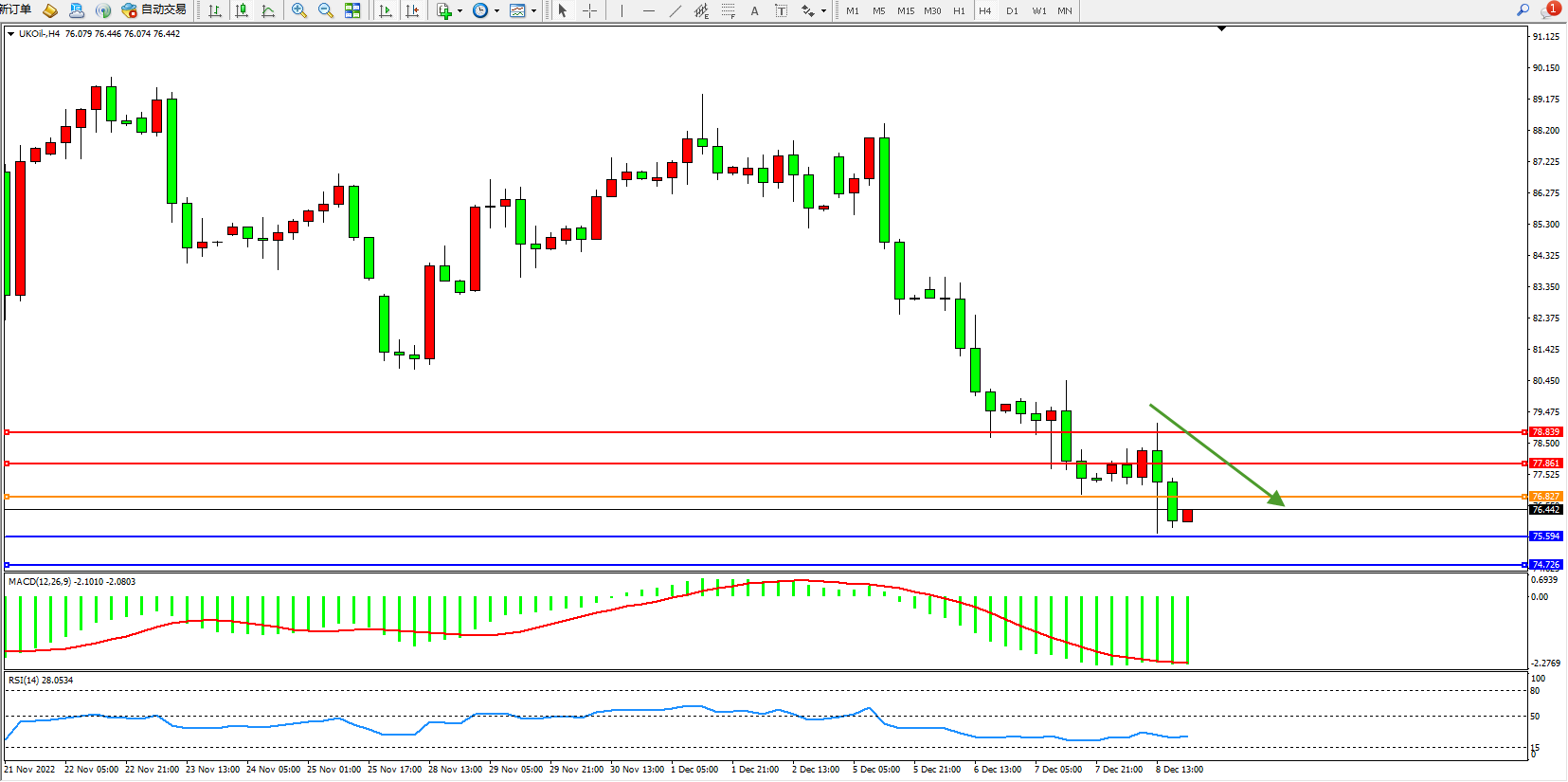 布油UKOil——4小时K线图显示: