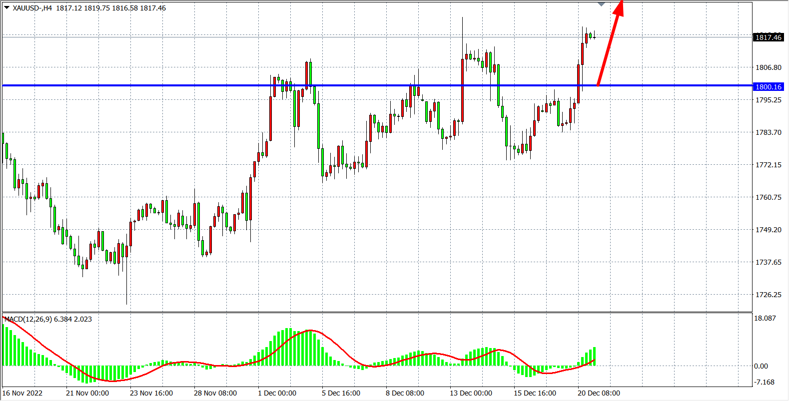 交易策略:在1800.00之上看涨,目标1825.00         1835.00
