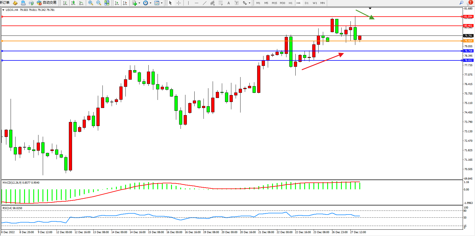 原油USOil——4小时K线图显示: