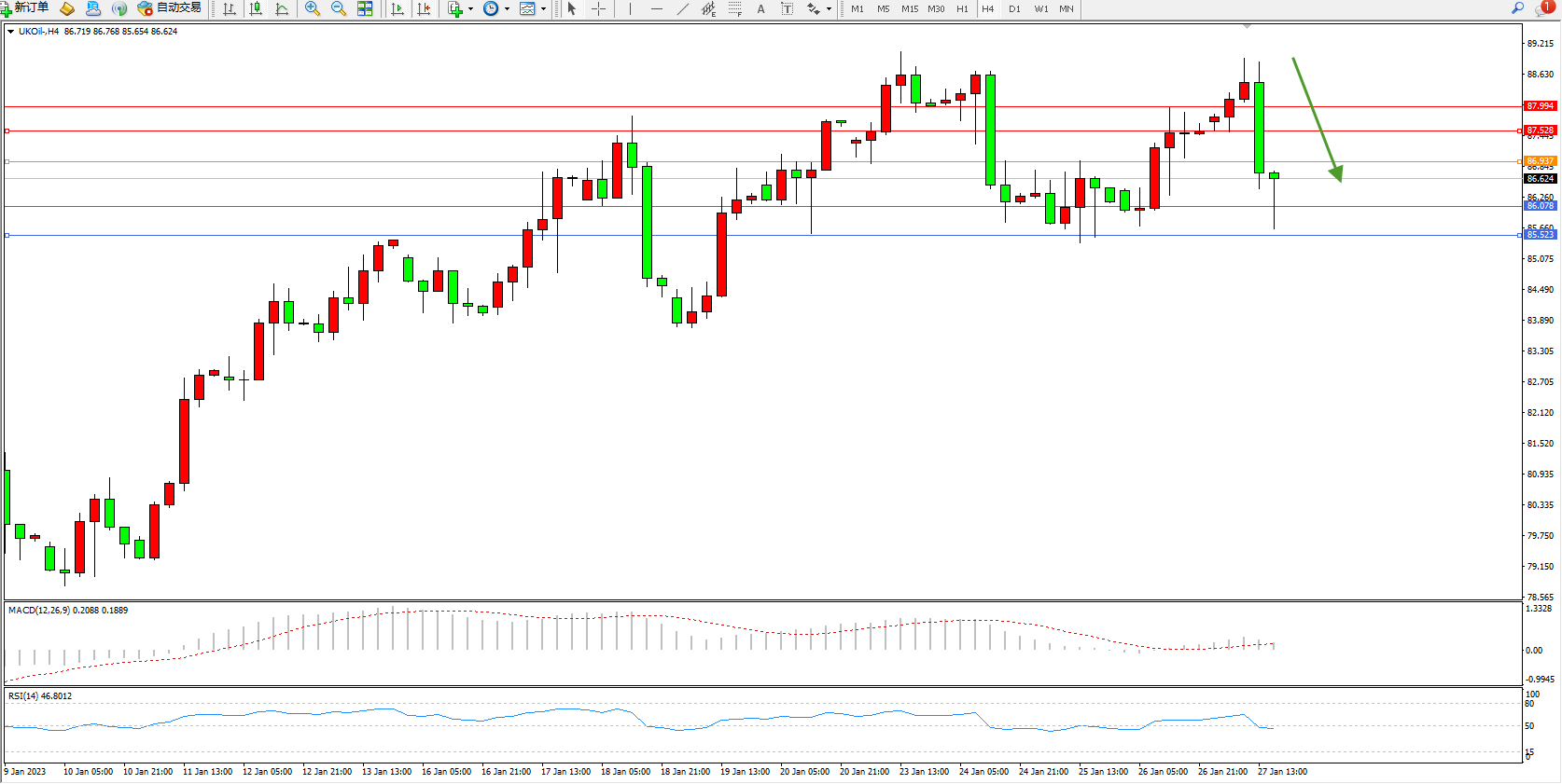 布油UKOil——4小时K线图显示:
