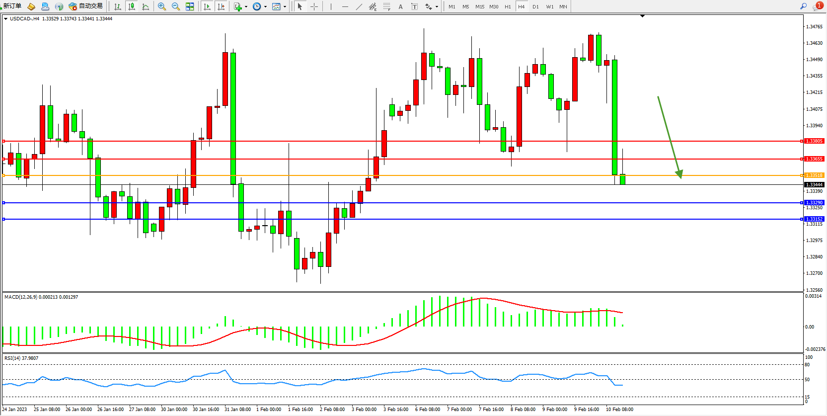 交易策略:1.33518下方看跌,目标1.33290、1.33152