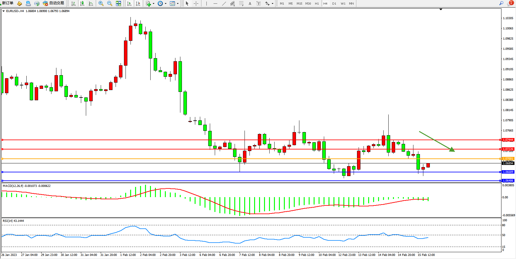 欧元兑美元维持1.06894附近震荡,欧元区12月的贸易逆差有所收缩,从全年来看,出口较2021年增长18.0%,这反映了疫情后贸易状况的改善,但进口增长37.5%,这可能反映了俄罗斯和乌克兰冲突期间能源进口成本上升。