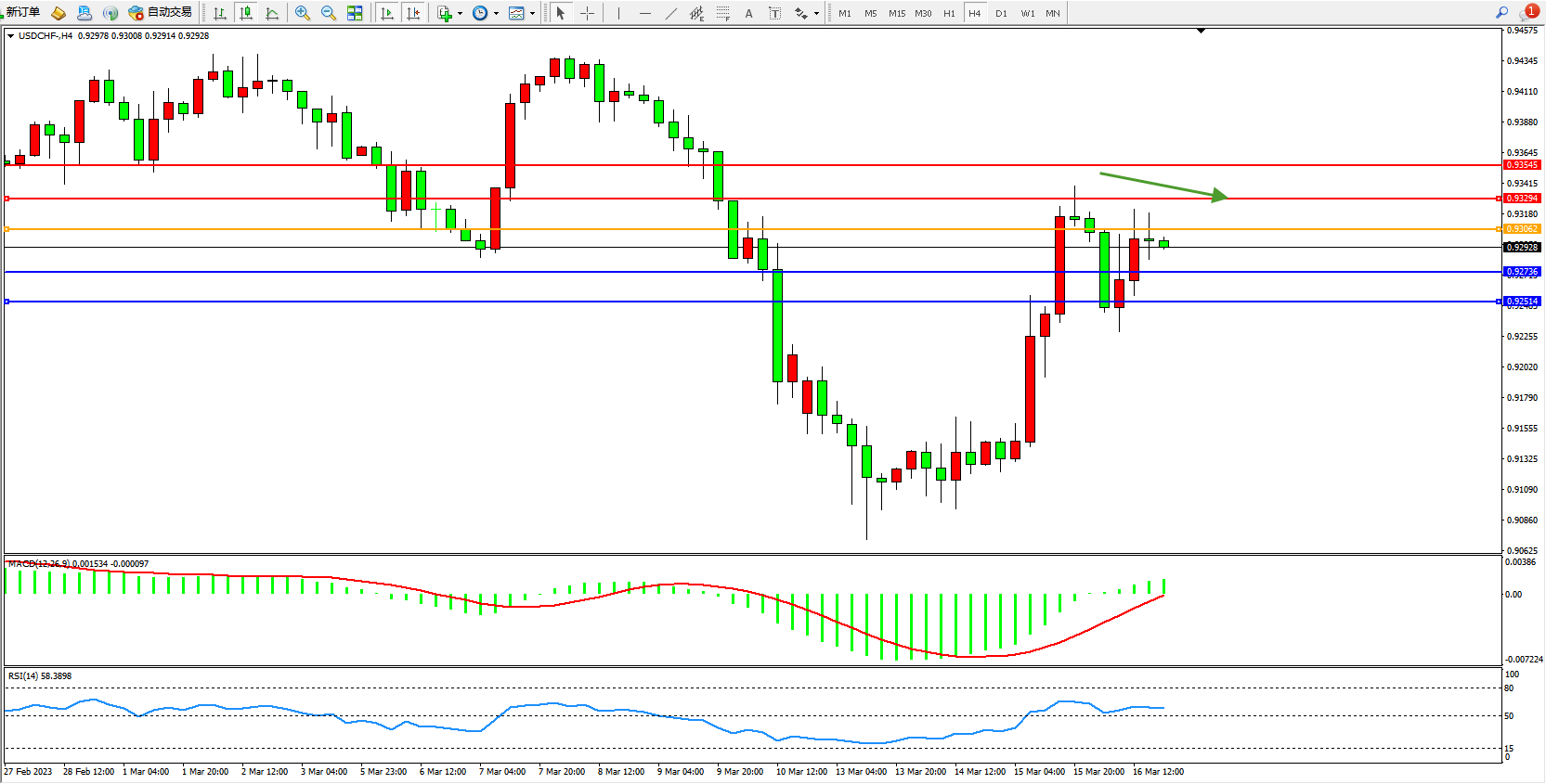 美元兑瑞郎维持0.92928附近震荡,瑞士信贷拟向央行借入高达540亿美元,力图化解信心危机;瑞士信贷的危机,使投资者和监管机构的关注点从美国转移到欧洲。