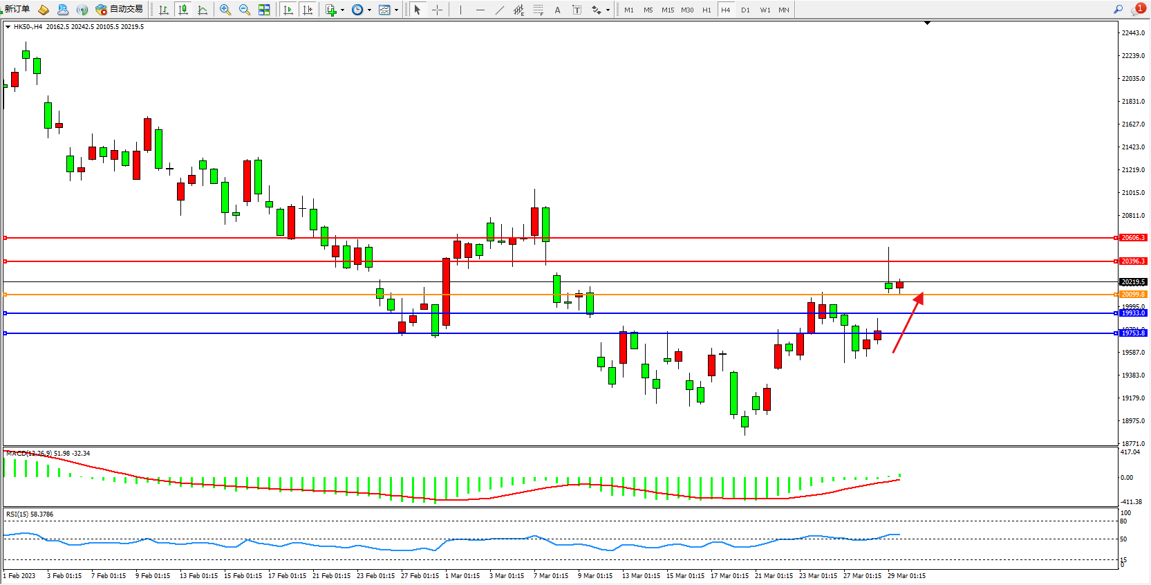 香港恒生指数3月29日(周三)收盘上涨407.75点,涨幅2.06%,报20192.4点;港股全天维持强势行情,阿里巴巴暴动带领相关概念股拉升,权重科技股引领大市上涨。截止收盘,恒指涨2.06%重回2万点上方,恒生科技指数涨2.47%收复4200点。重大改革致阿里巴巴大涨超12%,美团涨4%,腾讯涨近2%,ChatGPT概念股尤其强势;南下资金净流入46.07亿港元,大市成交额为1464亿港元。