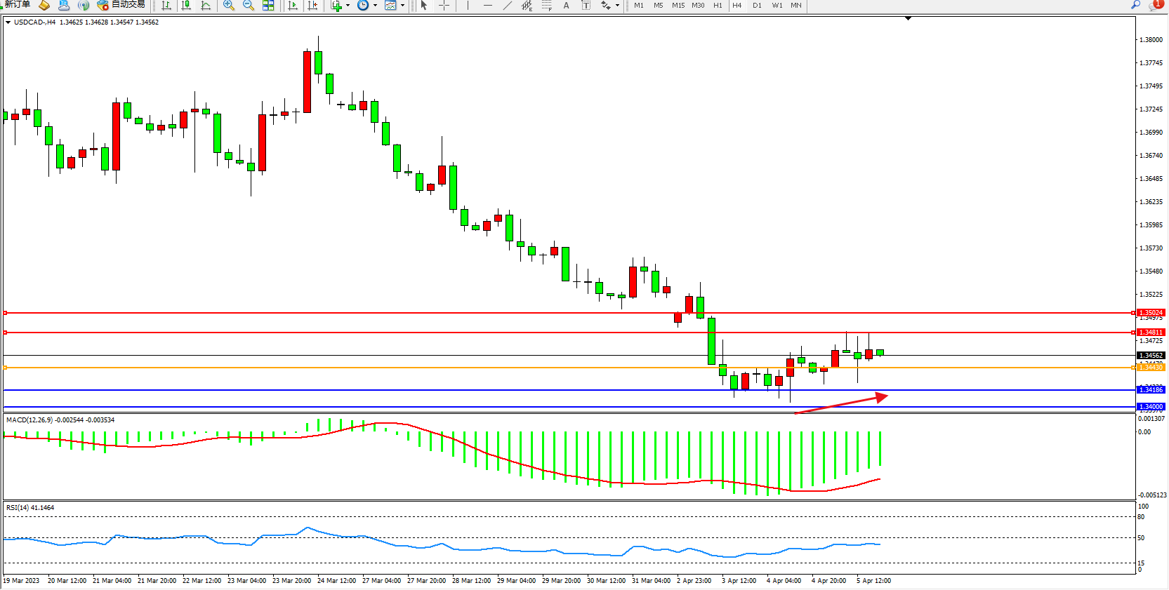美元加元USDCAD——4小时K线图显示:
