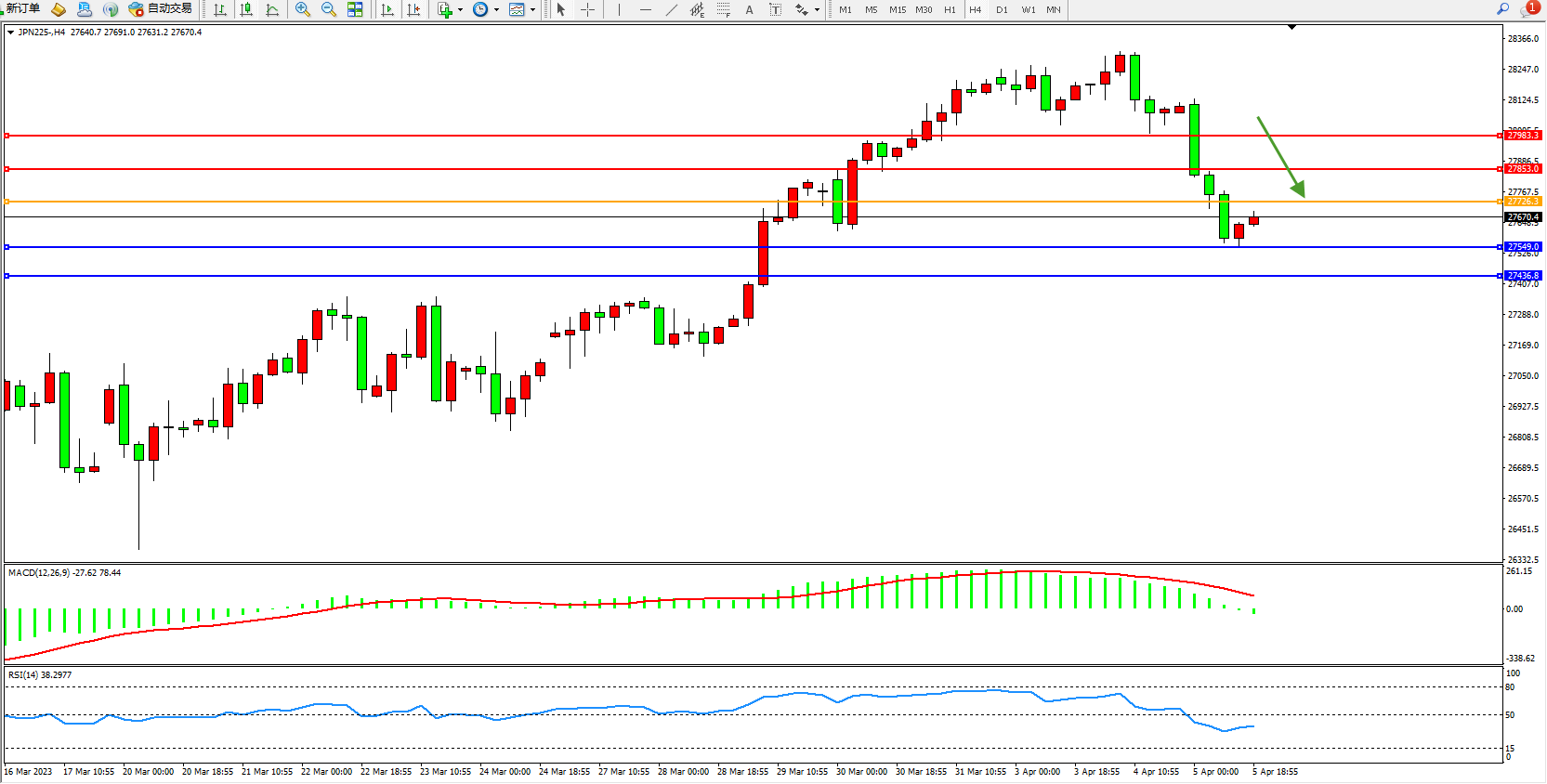 日经225指数4月5日(周三)收盘下跌460.42点,跌幅1.63%,报27827.00点。前日本央行货币政策官员:日本央行可能在4月份结束收益率曲线控制政策;全球债券收益率下跌已经为日本央行本月取消收益率曲线控制(YCC)政策创造了有利条件。