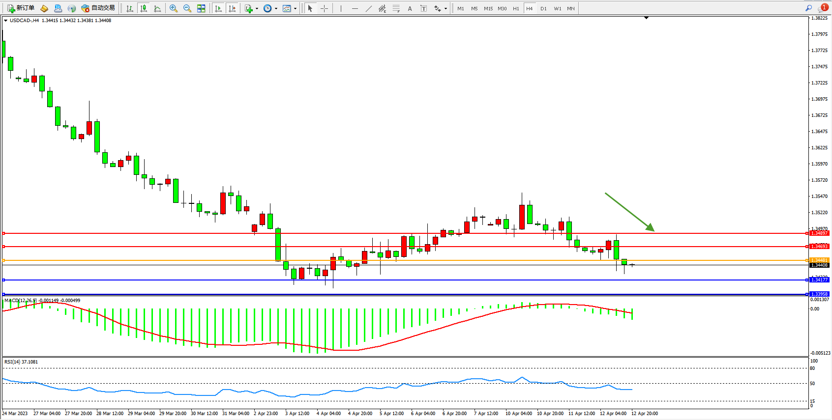 交易策略:1.34481下方看跌,目标1.34177 1.33958