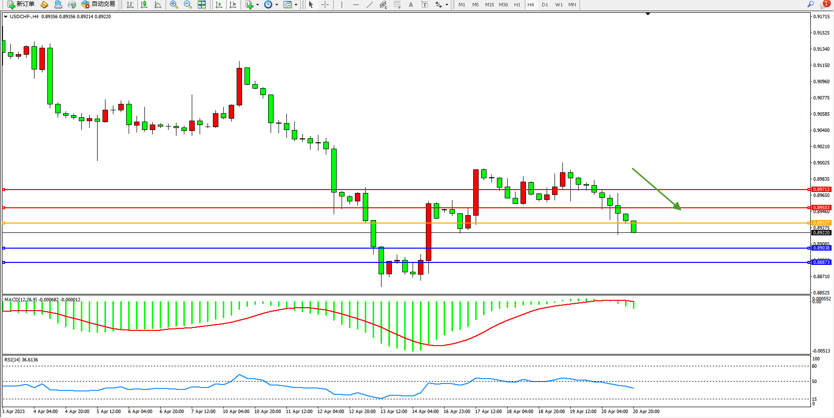 交易策略:0.89327下方看跌,目标0.89038 0.88873