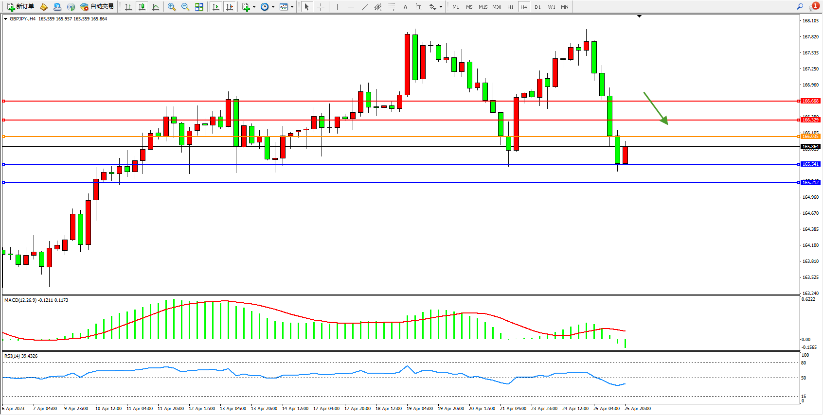 交易策略:166.035下方看跌,目标165.541 165.212