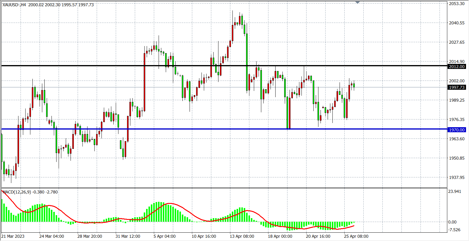 周二(4月25日)距离美联储下一次议息会议仅一周时间,市场却再现意外,美国银行危机重燃,同时美国经济数据好坏参半,美联储利率掉期不再完全定价美联储将在年中前加息,现货黄金受到避险需求提振,盘中上破2000美元大关,收涨0.4%。展望后市,由于美联储5月利率决议临近,美联储官员目前已进入噤声期,需重点关注各项经济数据对金价的影响。