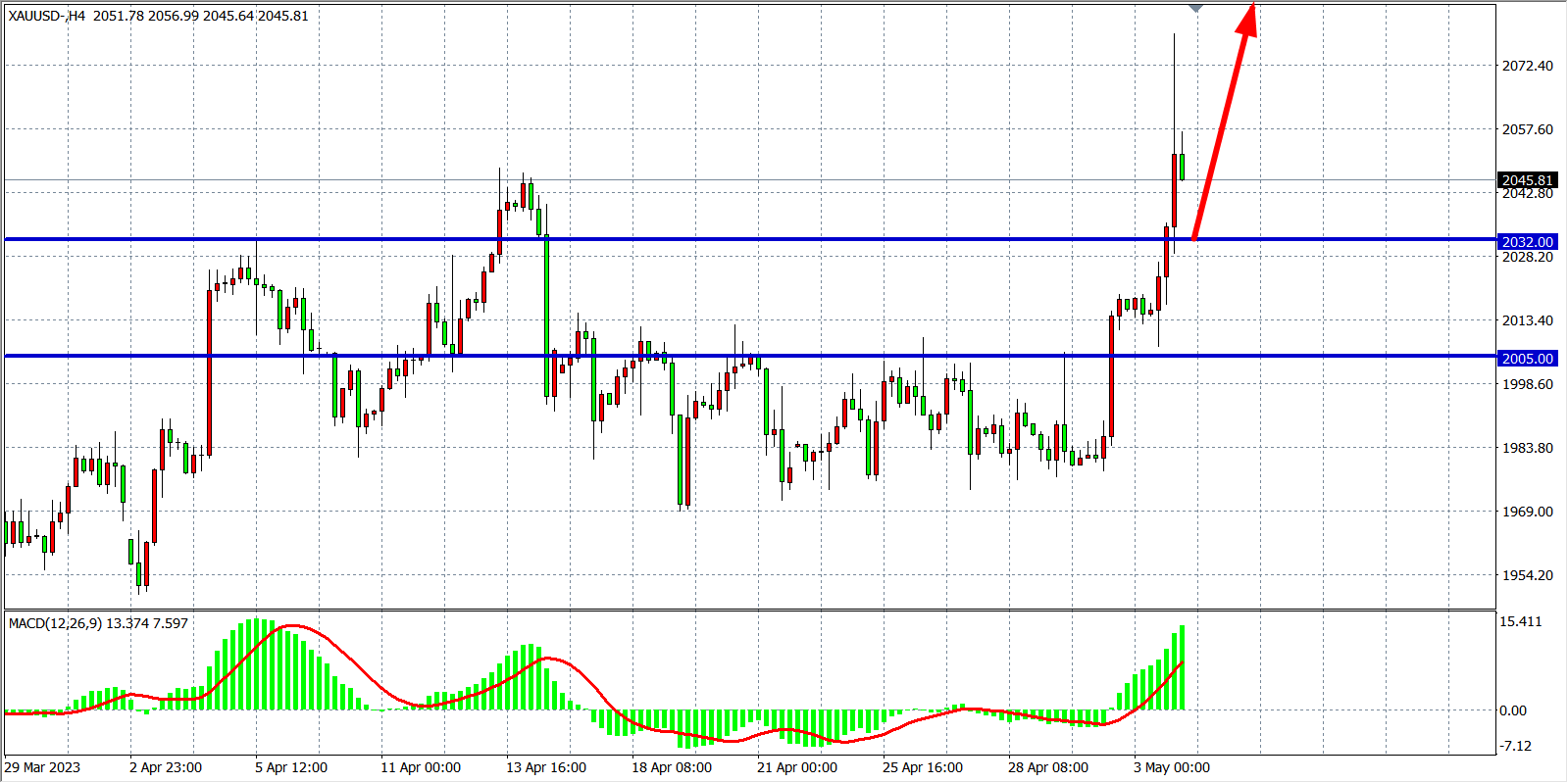 现货黄金XAUUSD 四小时图