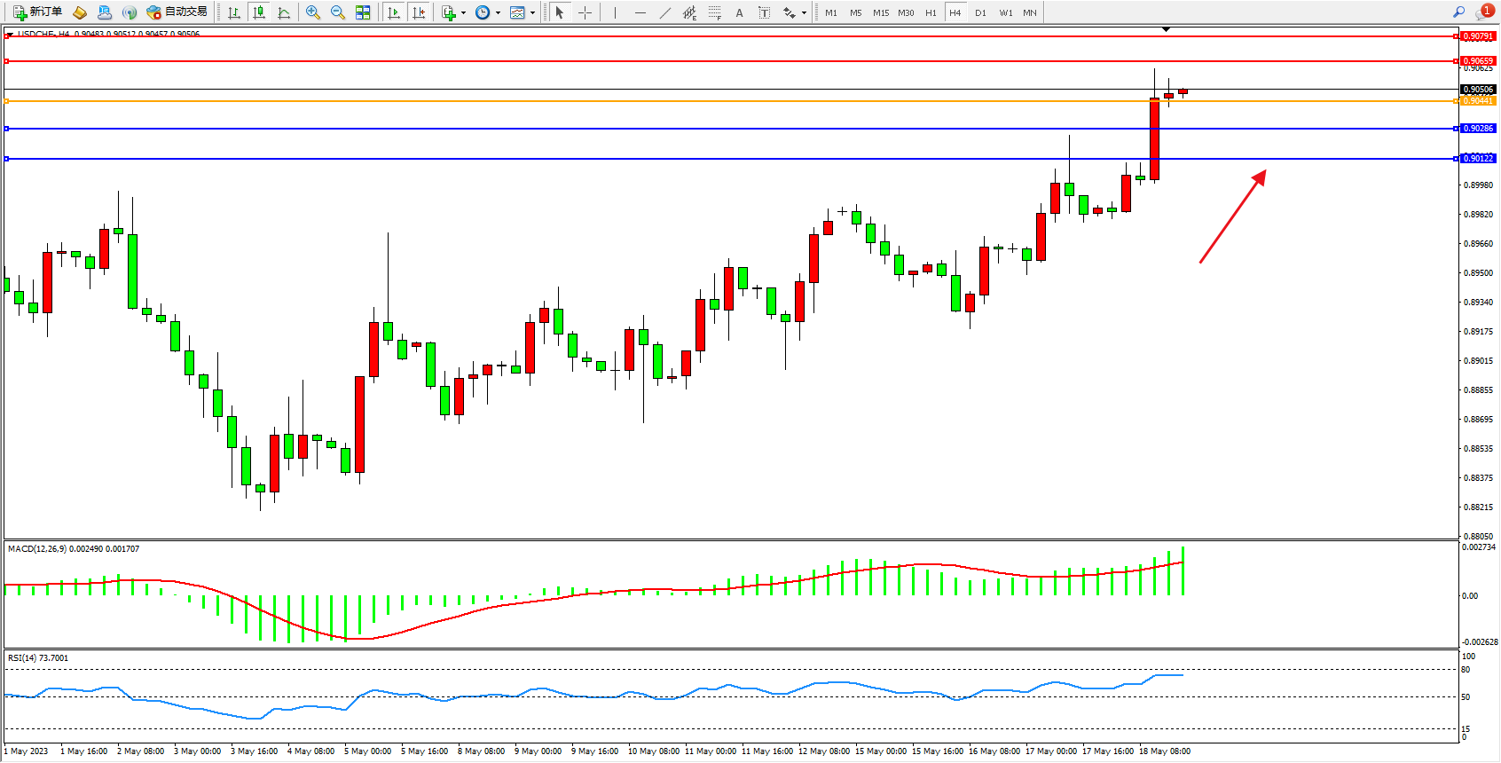 USDCHF:高位上扬