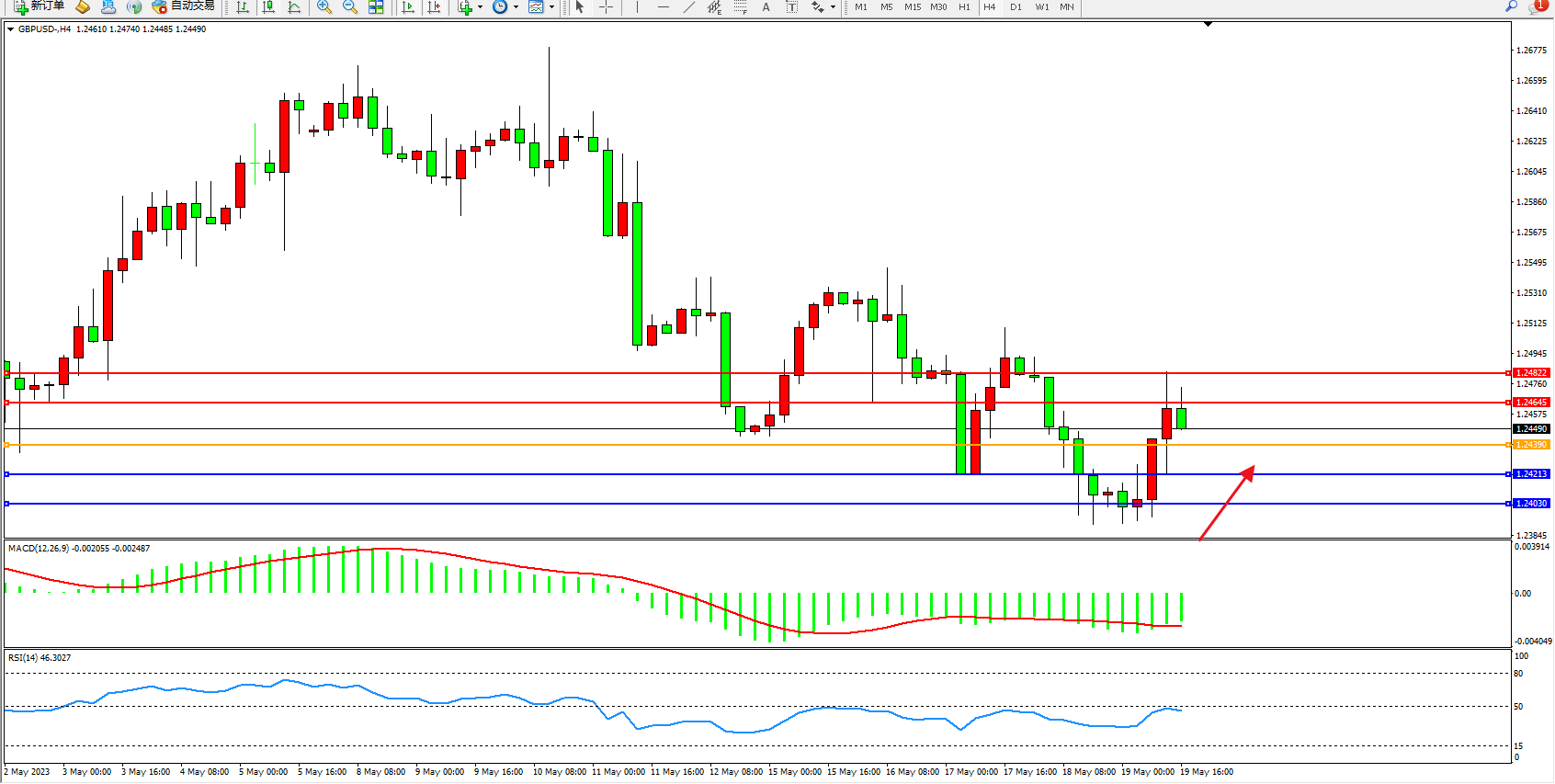 英镑美元GBPUSD ——4小时K线图显示: