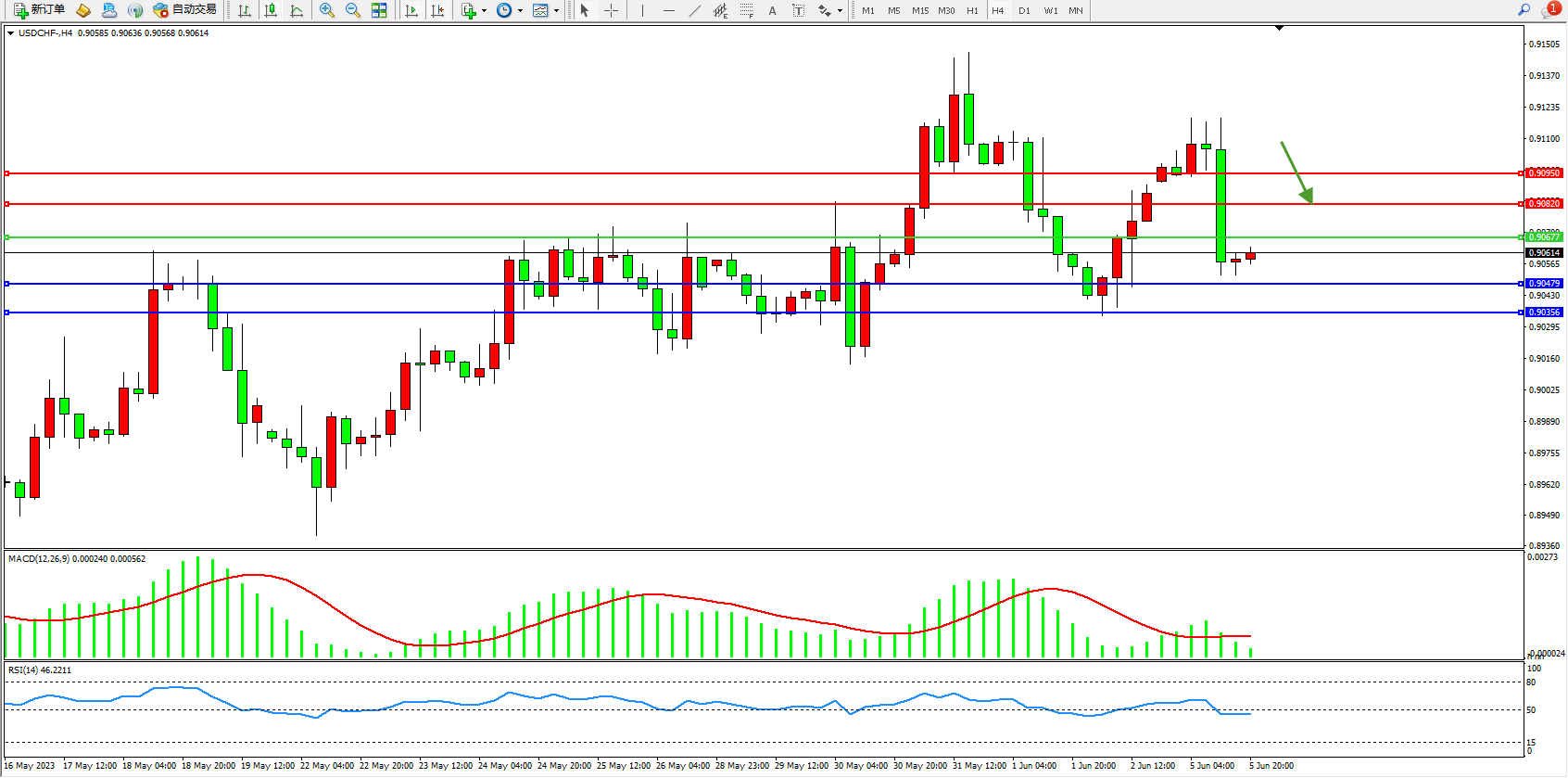 美元兑瑞郎维持0.90677附近震荡,瑞士5月CPI月率 0.3%,预期0.30%,前值0.00%。消费者价格通胀率环比上升0.3%。考虑到整体形势,瑞士央行仍将在本月晚些时候进一步收紧货币政策。
