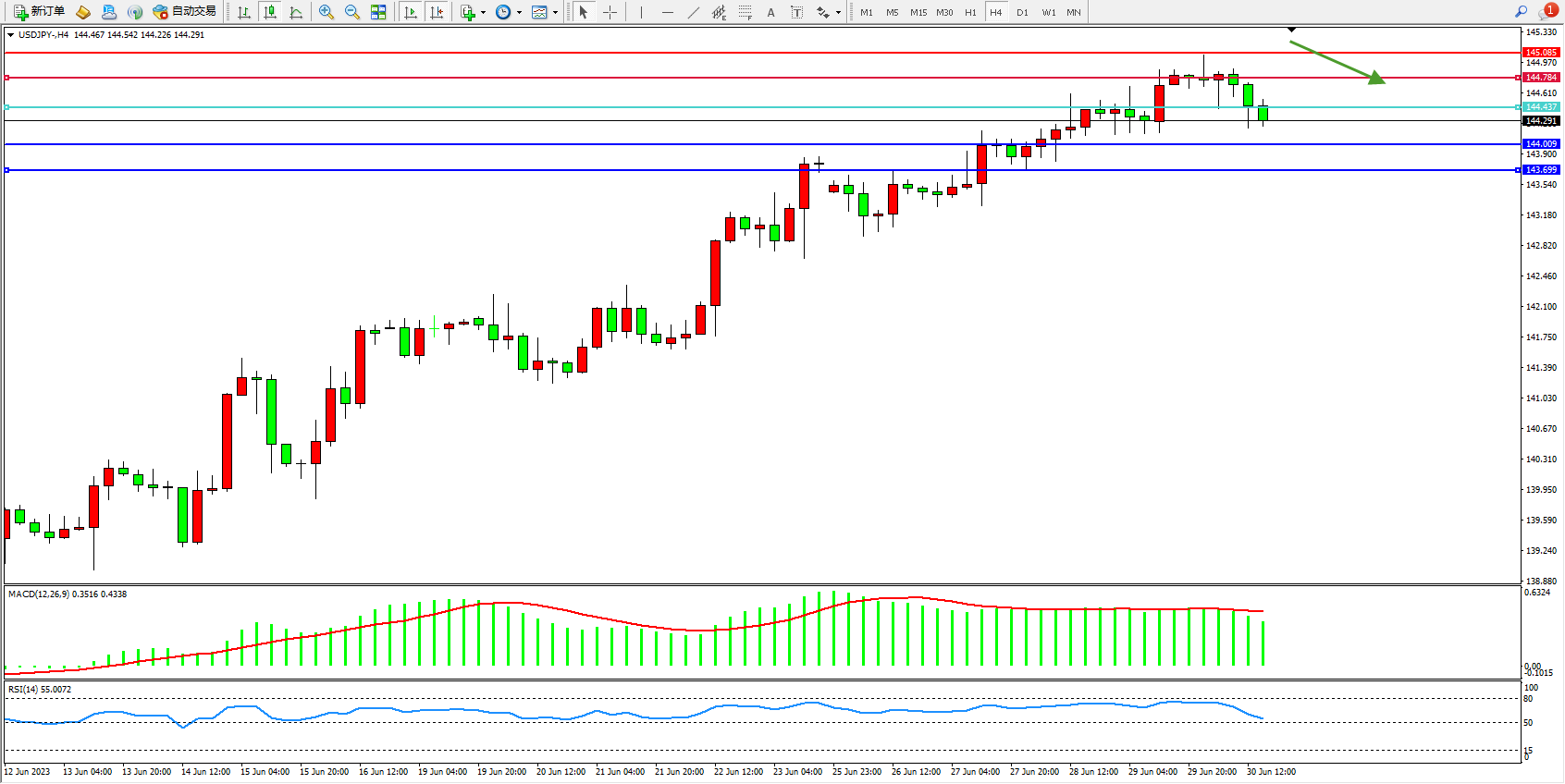 阻力位:144.784  145.085
