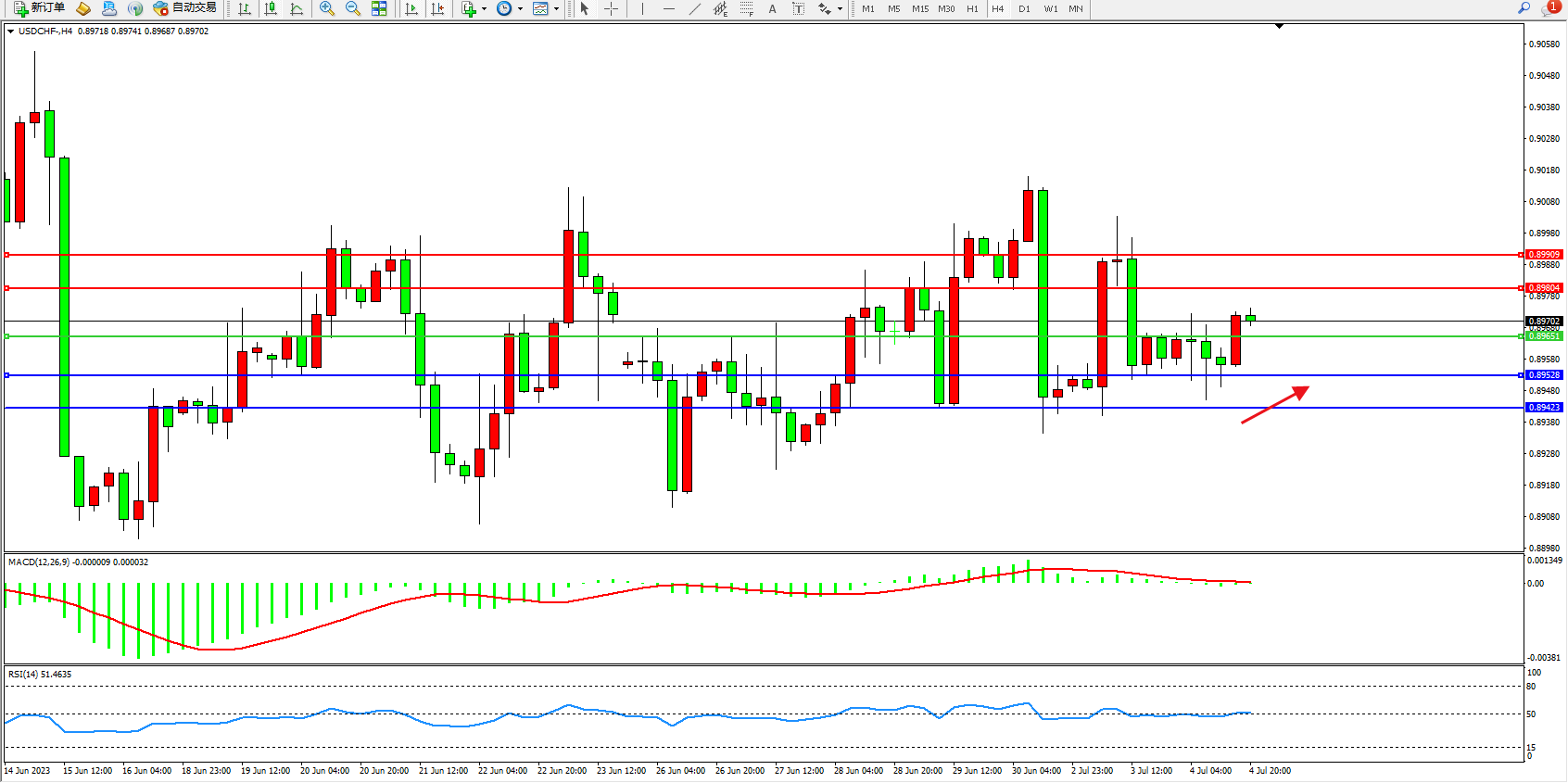 USDCHF:窄幅震荡 USDCHF  XAUUSD