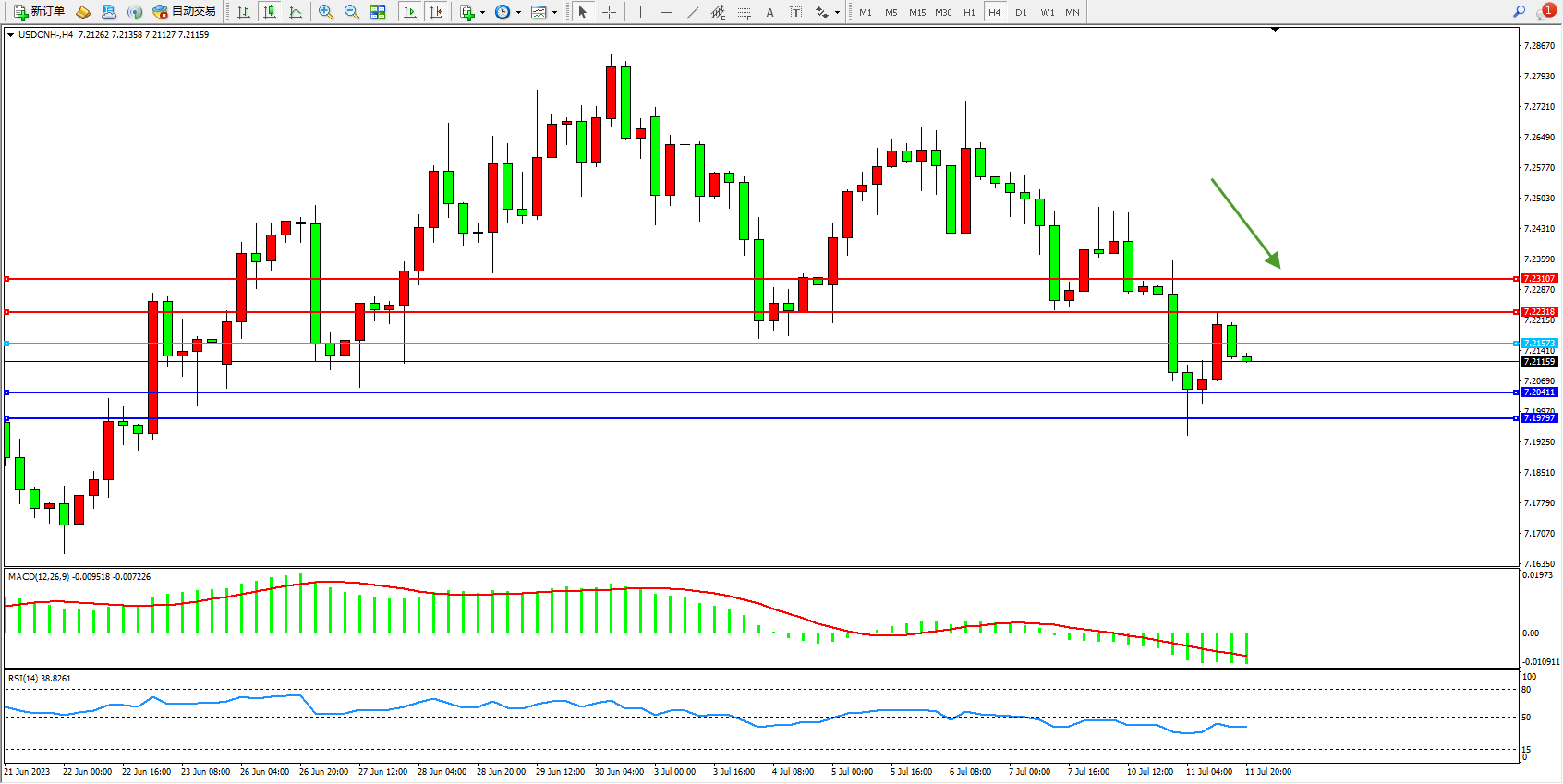 交易策略:7.21573下方看跌,目标7.20411 7.19797