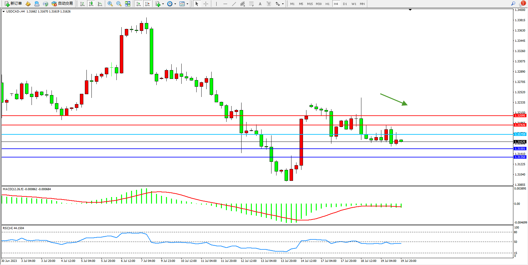 美元兑加元维持1.31626附近震荡,美元较低的收盘价可能会使短期技术指标略微偏向加元,美元兑加元在1.32的低位区域停滞不前,突显出美元在上周五大幅上涨后的涨幅有限。