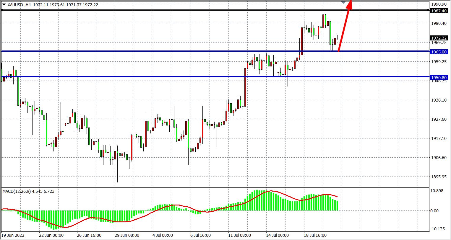 现货黄金XAUUSD 四小时图