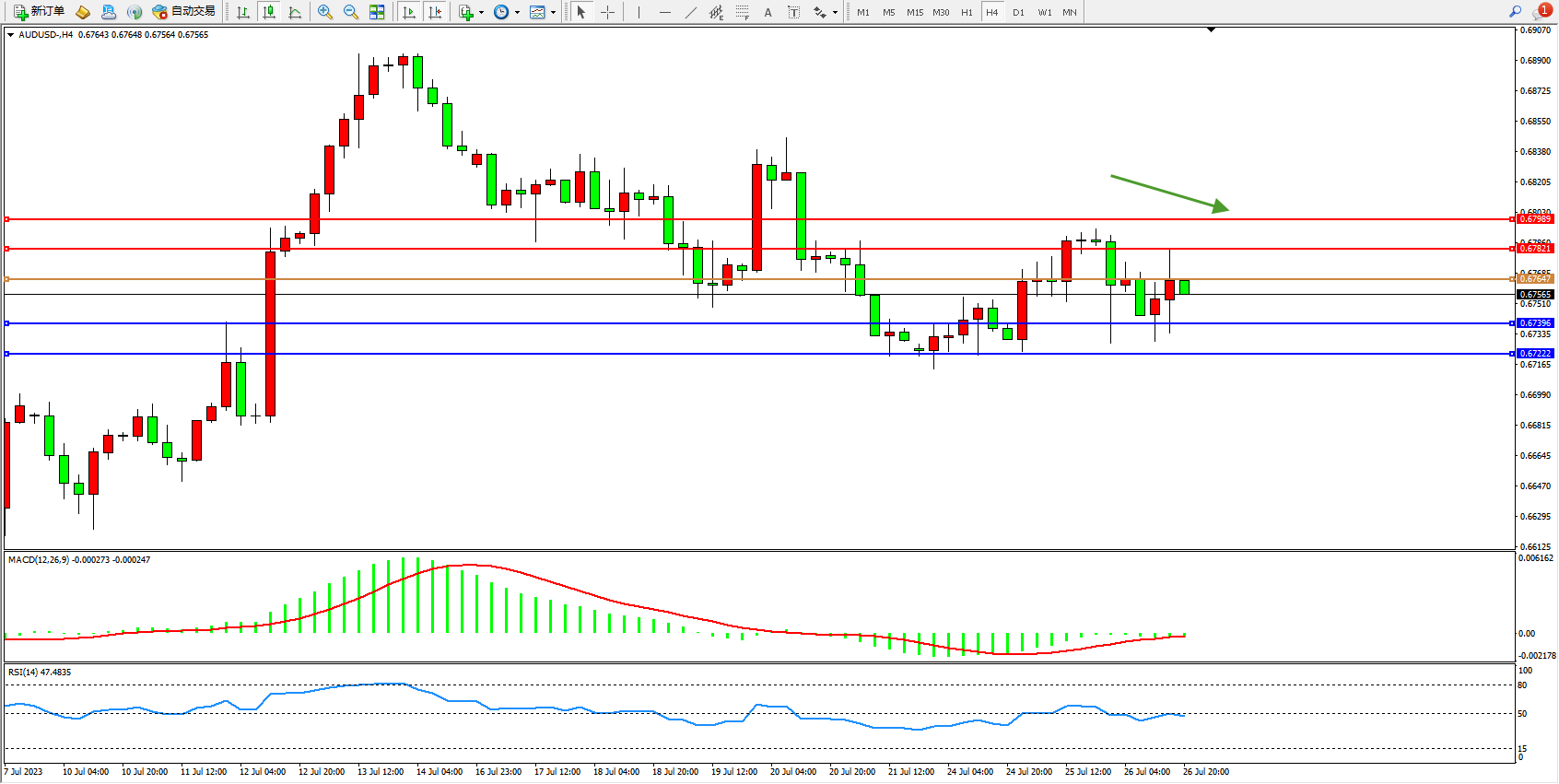 交易策略:0.67647下方看跌,目标0.67396  0.67222